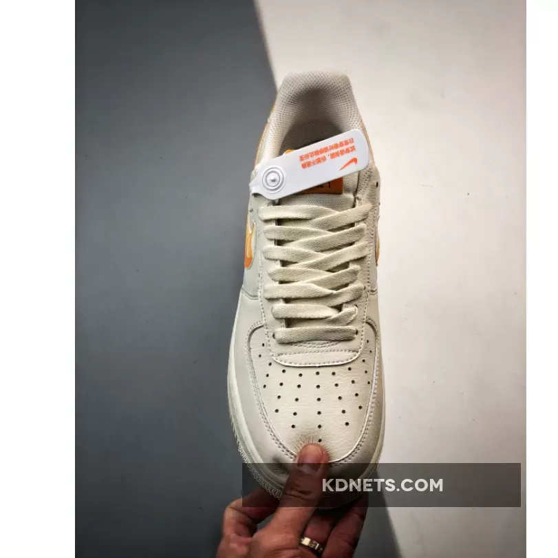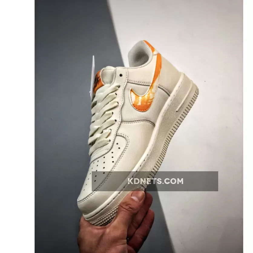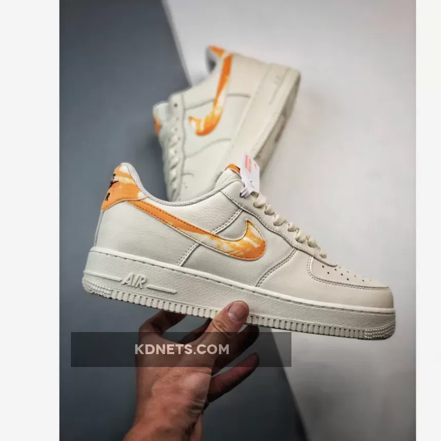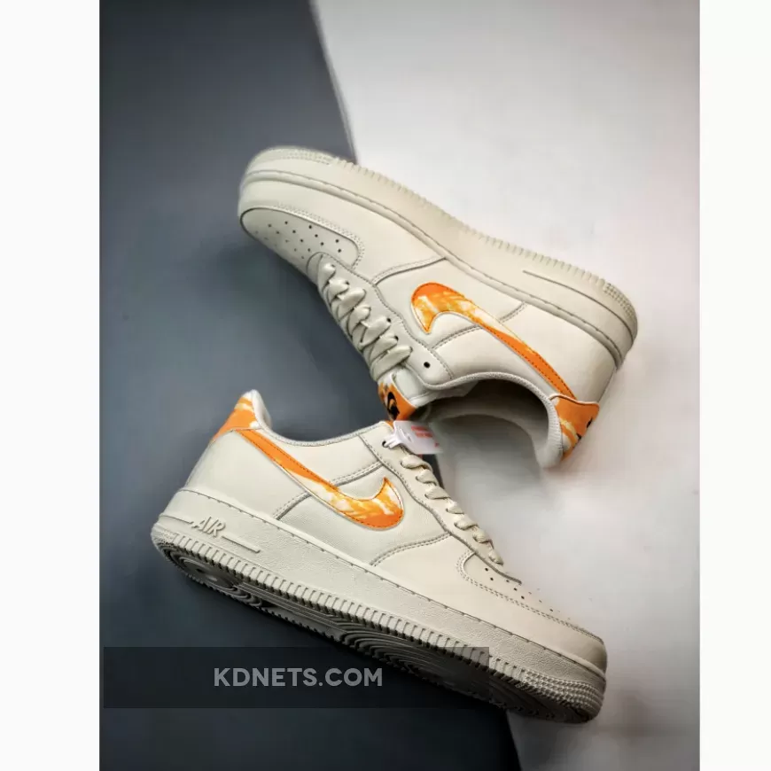 this Nike Air Force 1 Low features Sail across the upper while constructed with leather and mesh. Next, Orange streaks adorn the Swoosh logos, tongue labels, heels, and insoles. Black fills in the Nike branding on the tongue, heel tabs, and insoles. Finishing the look is a White midsole and matching rubber outsole.