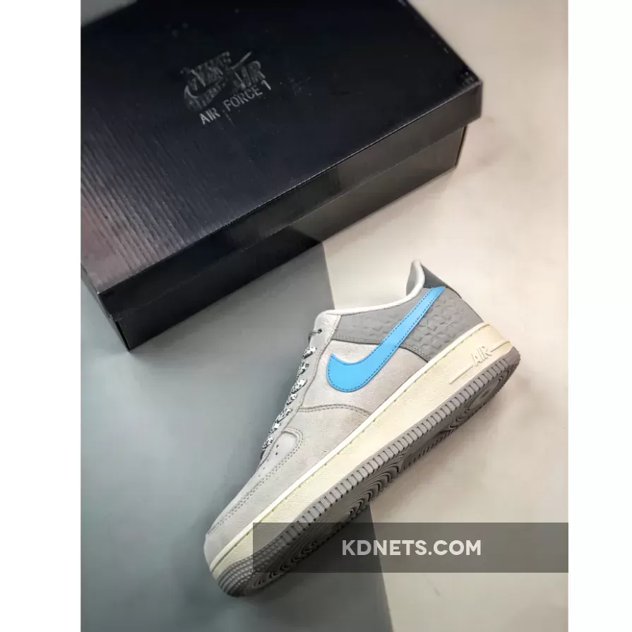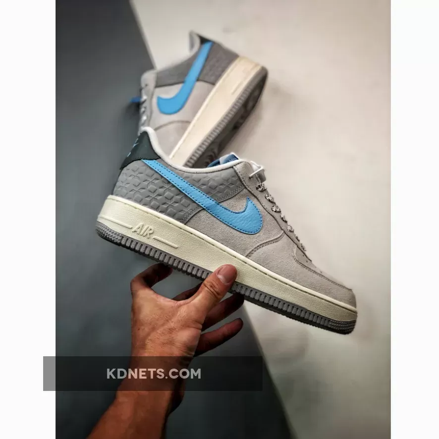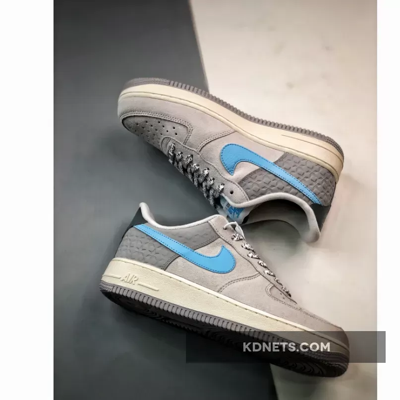 This Nike Air Force 1 Low comes highlighted with Grey suede on the base while leather drapes the overlays. Around the heel area, we have an all-over snowflake print which is commonly seen throughout the pack. Blue mesh appears on the tongue and speckled accents on the laces. Other details include White on the midsole, Grey on the rubber outsole, and a special snowflake hangtag.