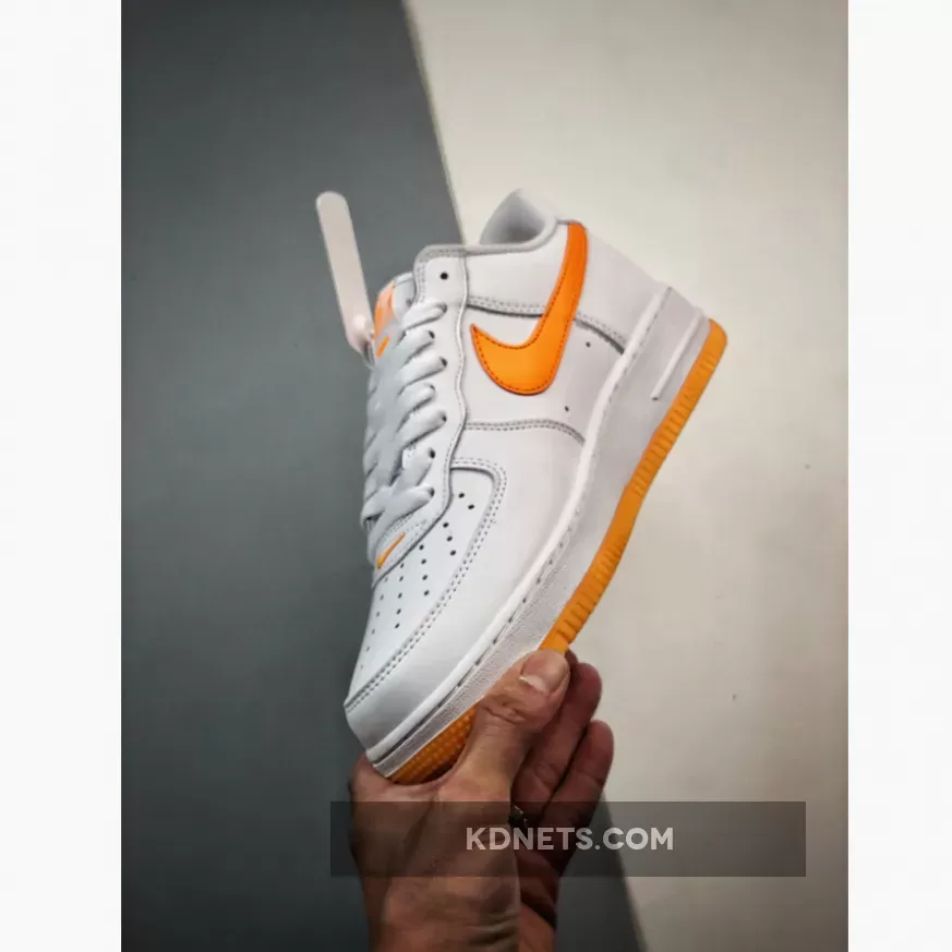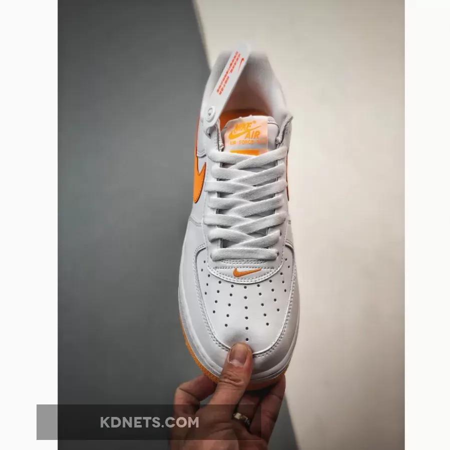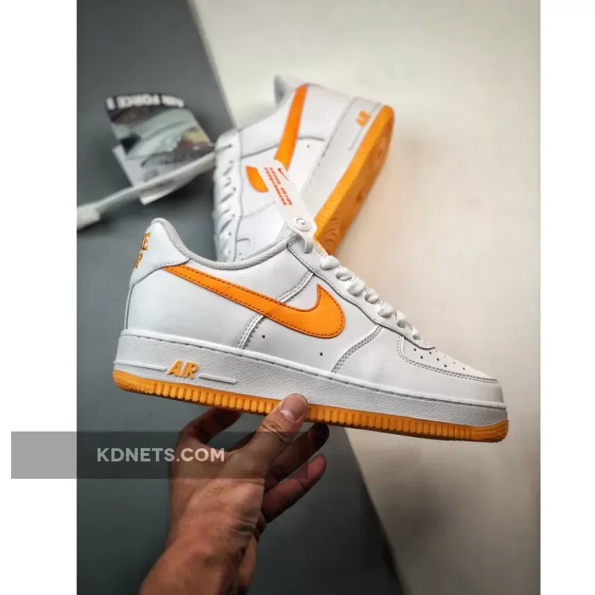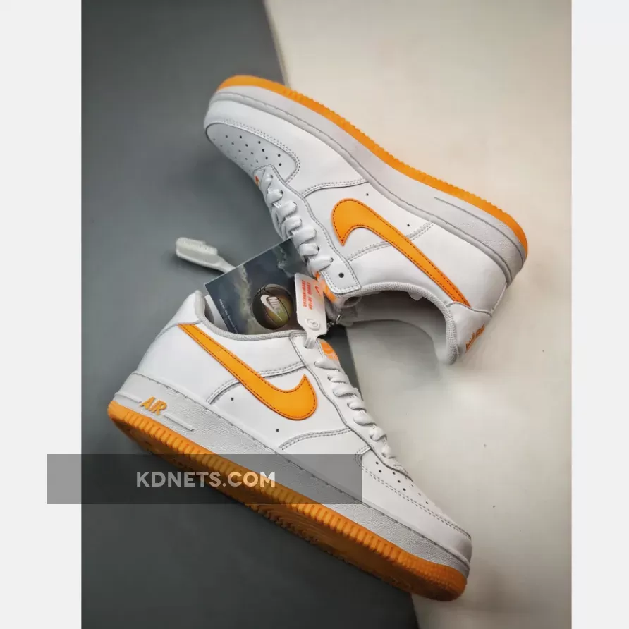 Solid. Premium white leather & vibrant orange accents. Waterproof tech keeps feet dry & the gum outsole offers excellent traction. Quality construction & design make these kicks a must-have for any sneakerhead. #NikeAF1 #WaterproofSneakers #StyleMeetsPerformance