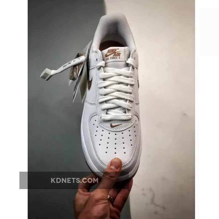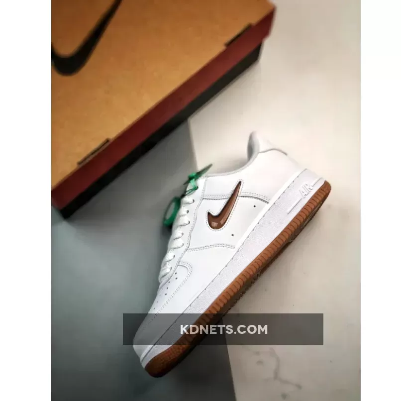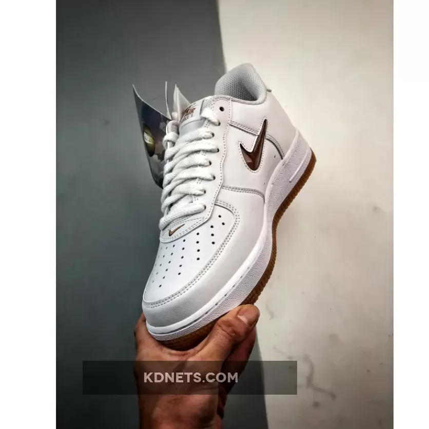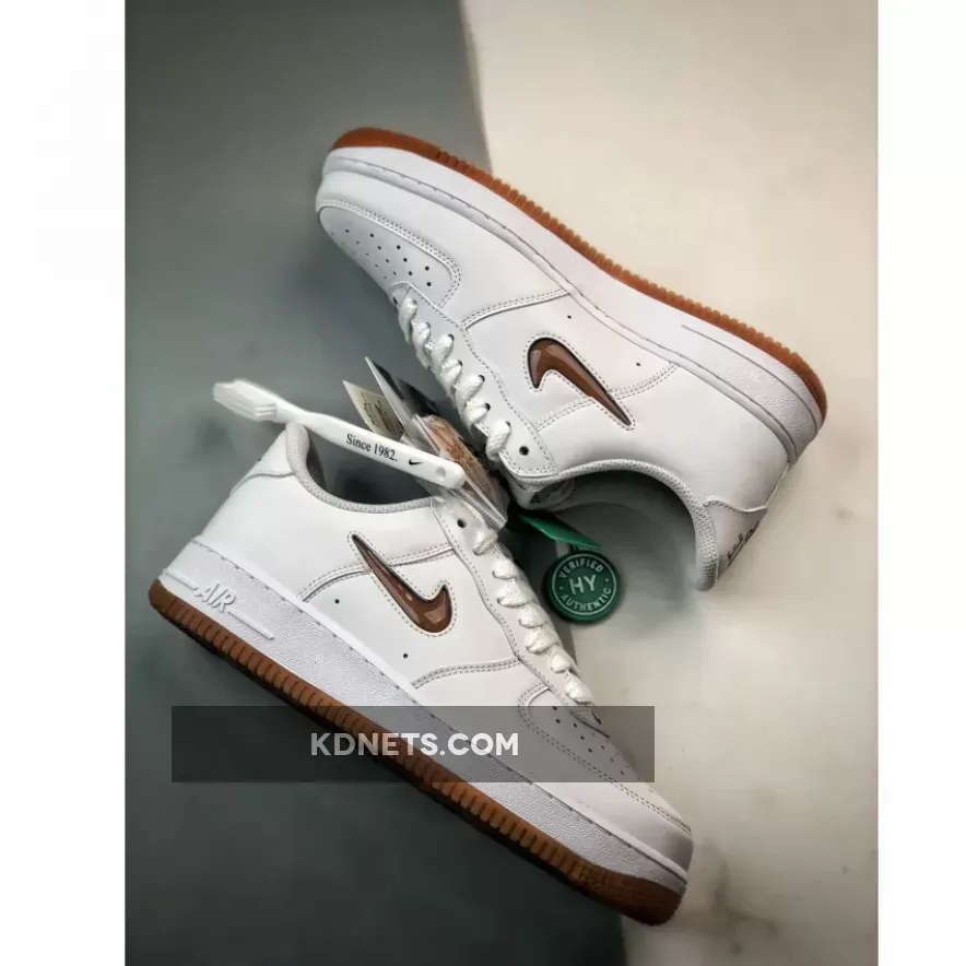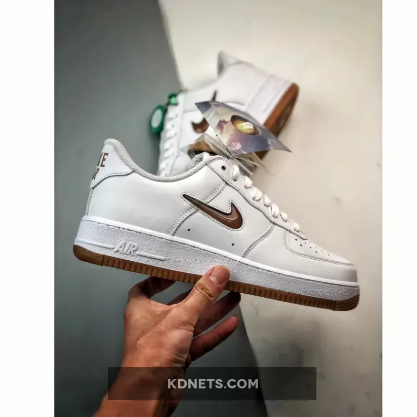 With an all-white leather structure, the Air Force 1 Low “Bronze Jewel” maintains its base simple yet stylish. The spotless white outfit acts as the backdrop for the show-stopping bronze-tinted Jewel Swooshes. The glittering bronze, evocative of hidden treasures, adorns the Swooshes as well as brand insignia, offering the shoe an air of royalty.