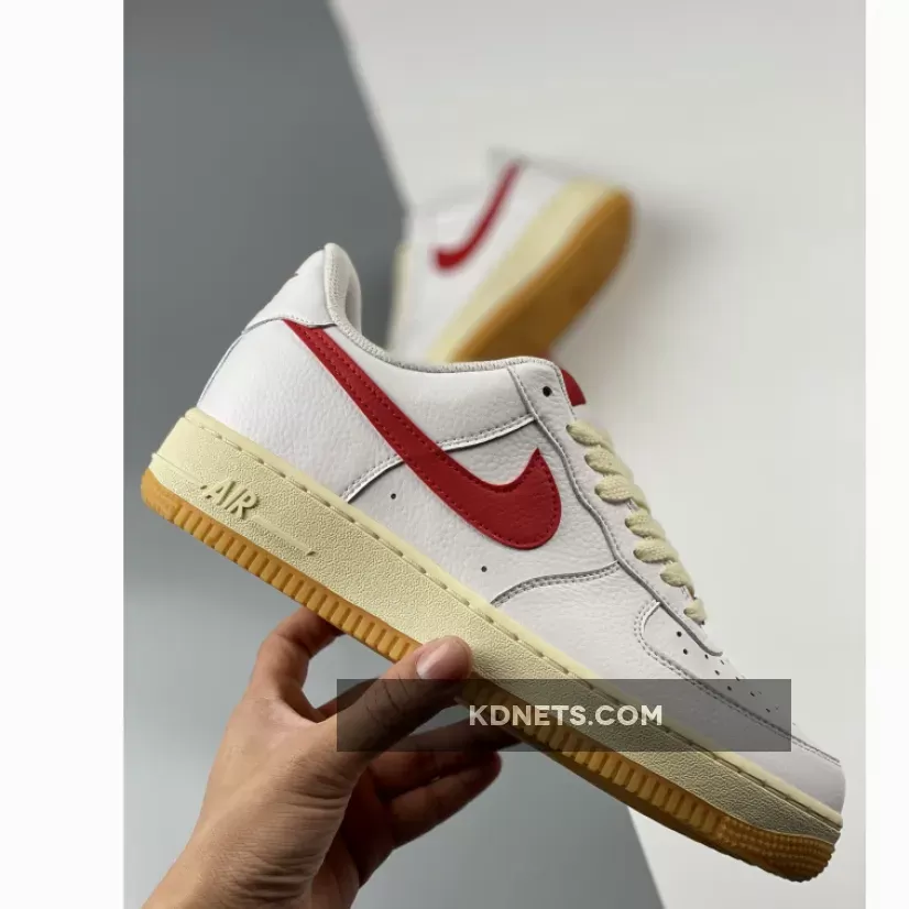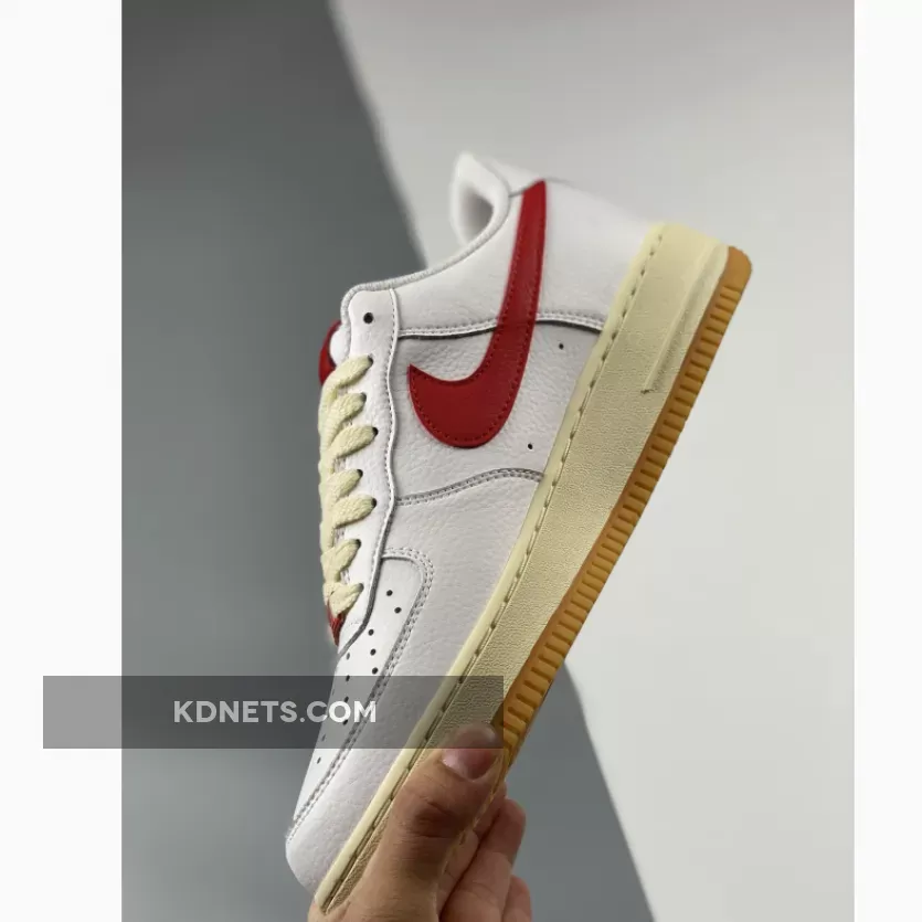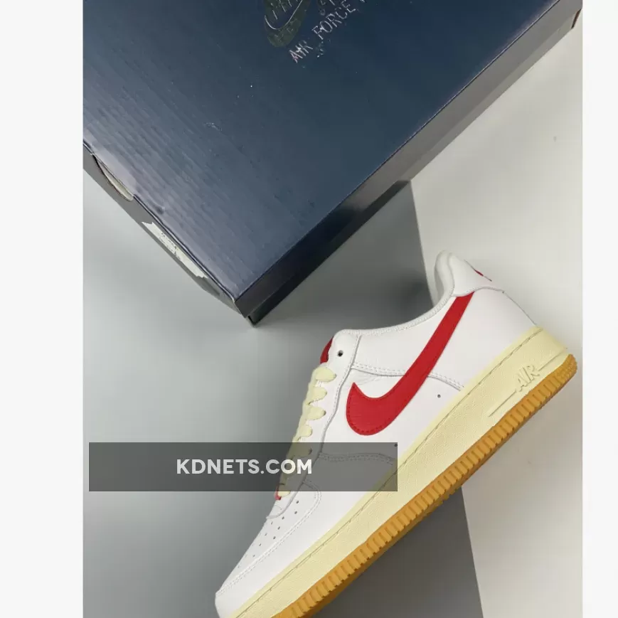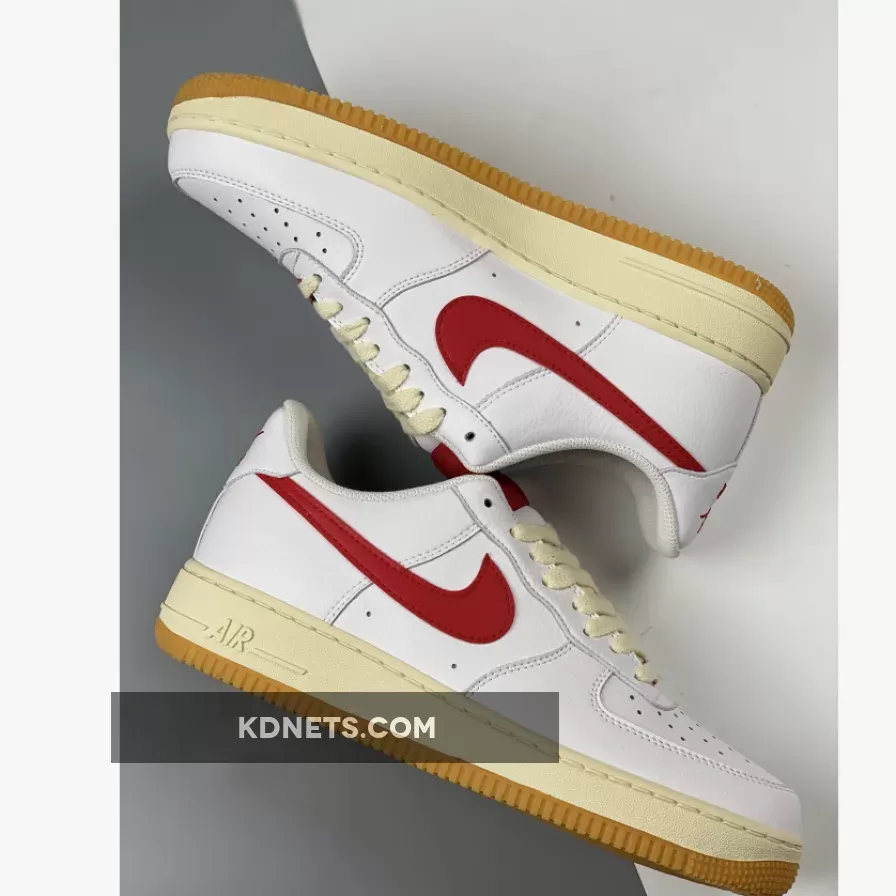 Similar to the construction of its recent “Color Of The Month” series, a premium tumbled leather encases the entirety of the crisp white base layer, save its tongue construction which dawns a heavily perforated makeup.. This Nike Air Force 1 Low comes with White leather on the upper with the signature perforations. Next, Red tumbled leather lands on the Swoosh logos, tongue labels, heel branding, lace locks, and insoles. Other details include aged laces and midsole, along with a Gum rubber outsole.