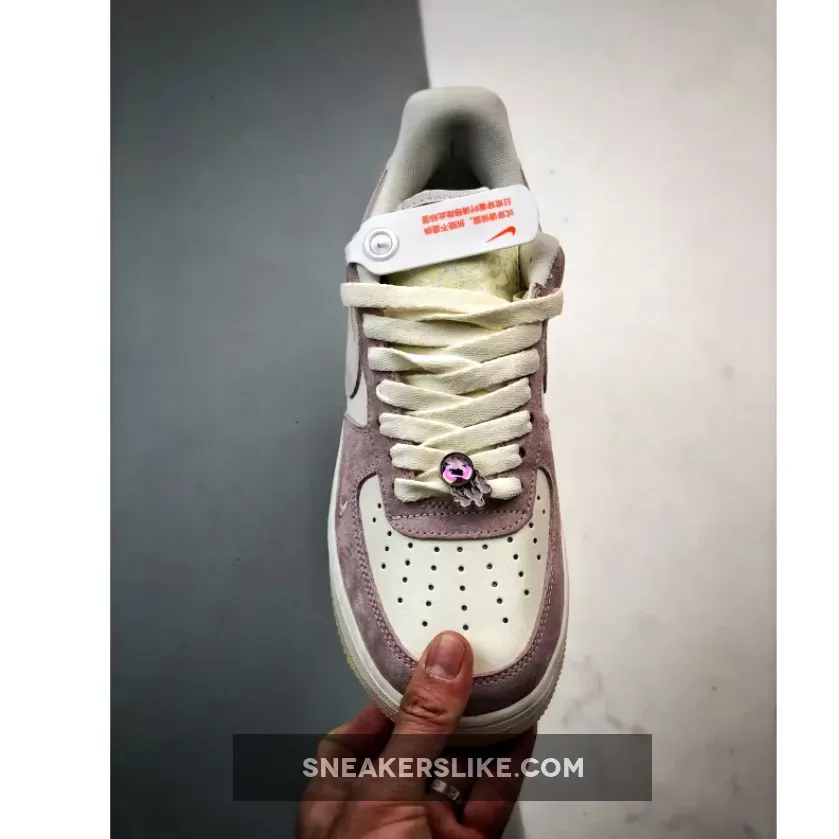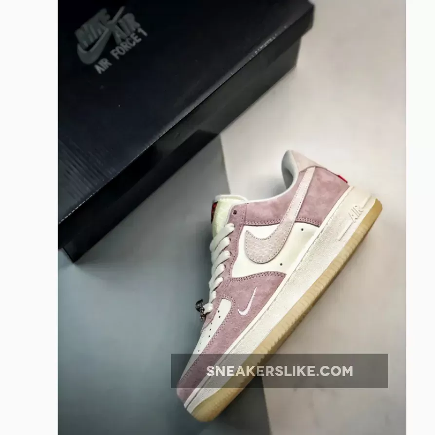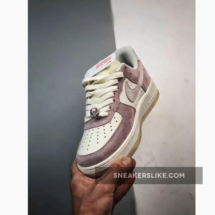The Air Force 1 Low’s facade is a serene portrait in soft pastel pink suede, set against a backdrop of ivory leather uppers, an interplay that captures the yin and yang of tranquility and strength.