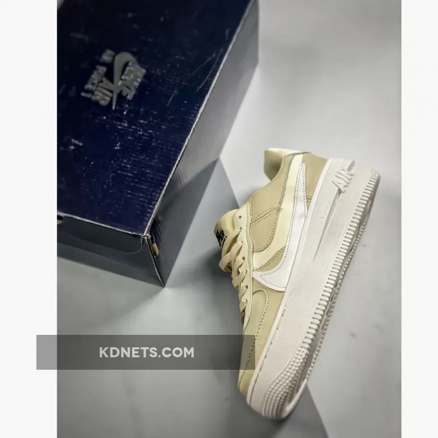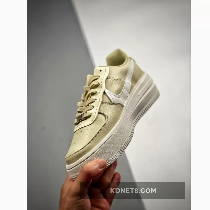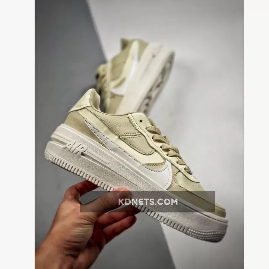 The Nike Air Force 1 PLT.AF.ORM Fossil is a sleek and stylish sneaker with a stunning earth-toned colorway. The double Swoosh design and tonal tan-colored Fossil leather create a unique and sophisticated look. The combination of smooth and tumbled leather adds a touch of luxury. Overall, a well-designed and stylish sneaker for casual and formal occasions.