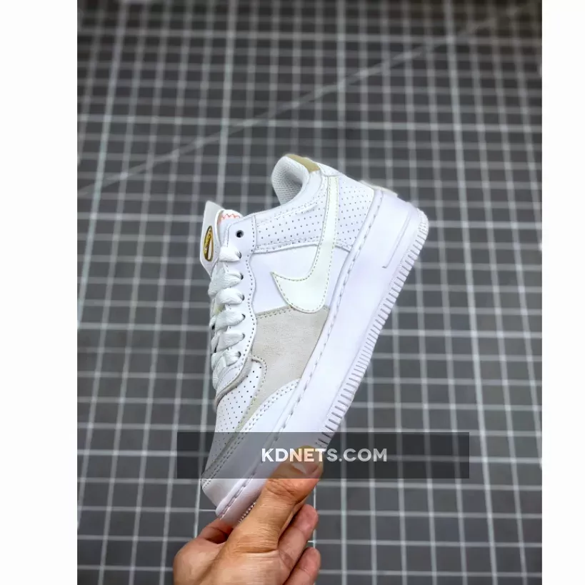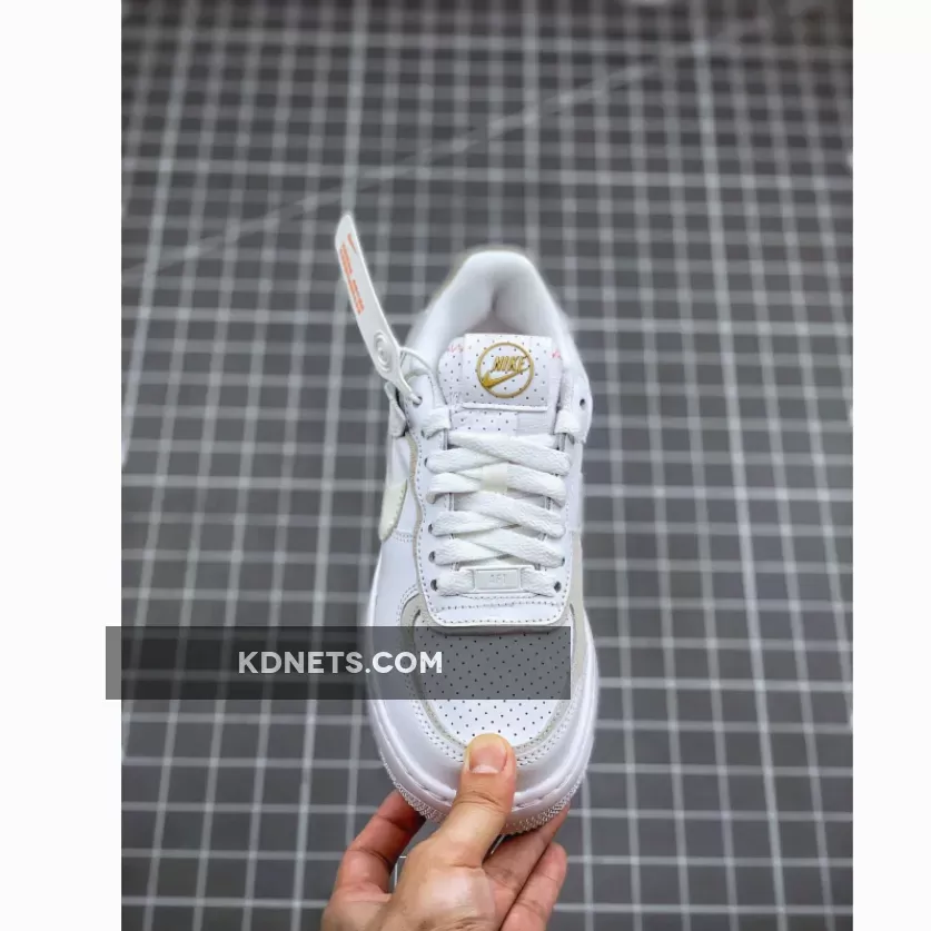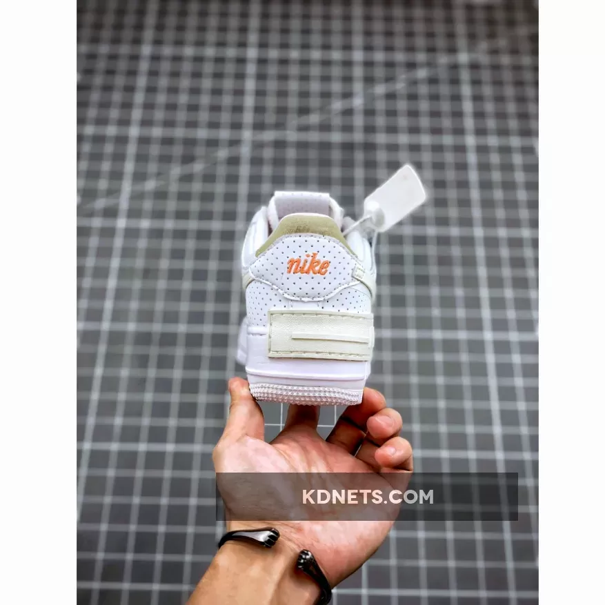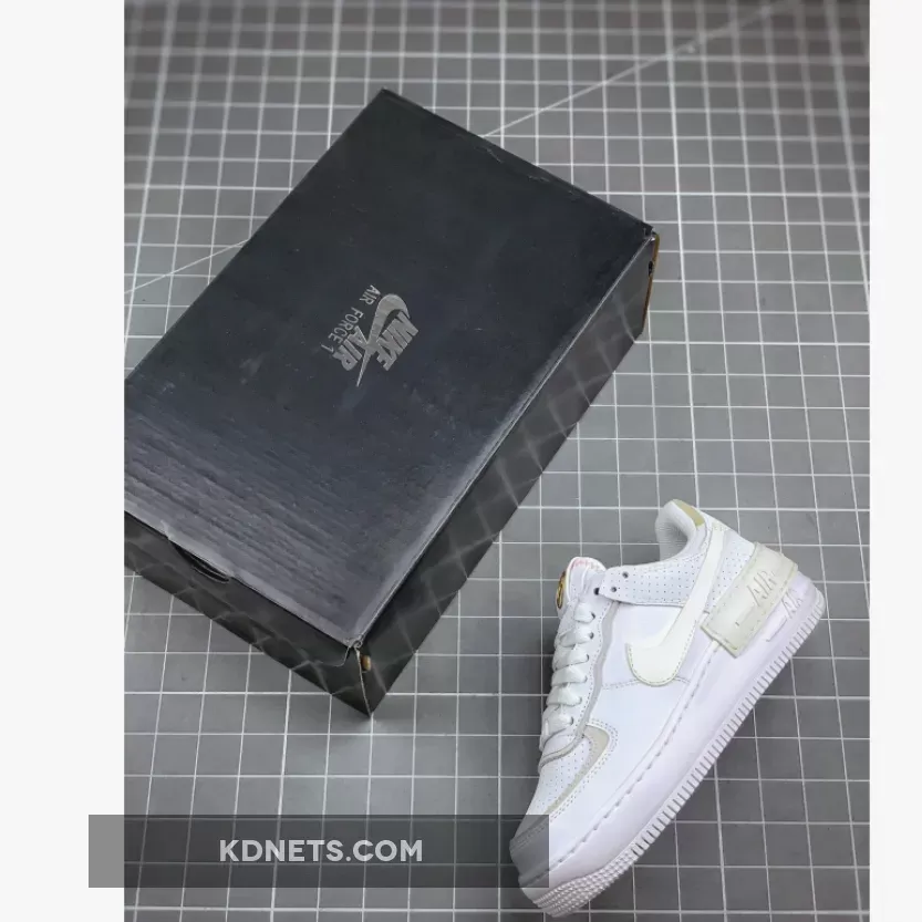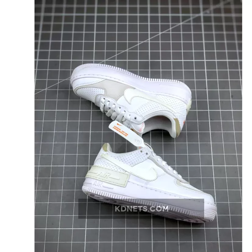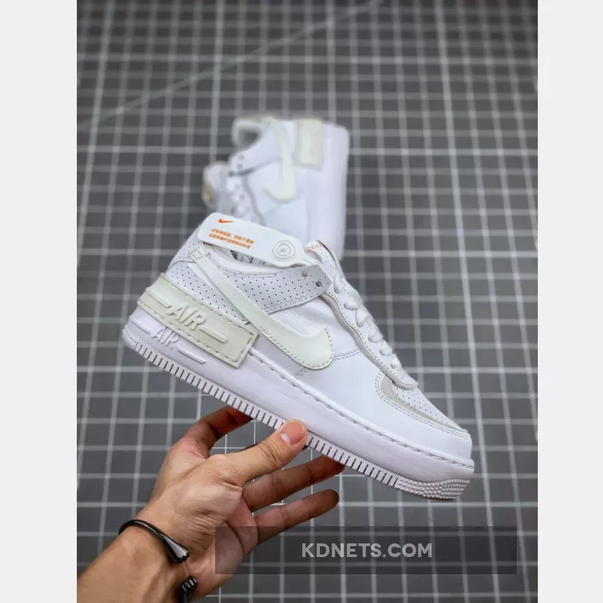 This white and cream Air Force 1 Shadow brings a more minimal aesthetic to the popular Swoosh silhouette, with new fabrics that haven’t been seen on this sneaker before. The upper looks to be crafted from a mixture of smooth leather and soft suede. Perforation holes scattered across the leather on the toe box, heel and collar allow for optimal airflow whilst adding a unique edge to this white cream AF1 Shadow.