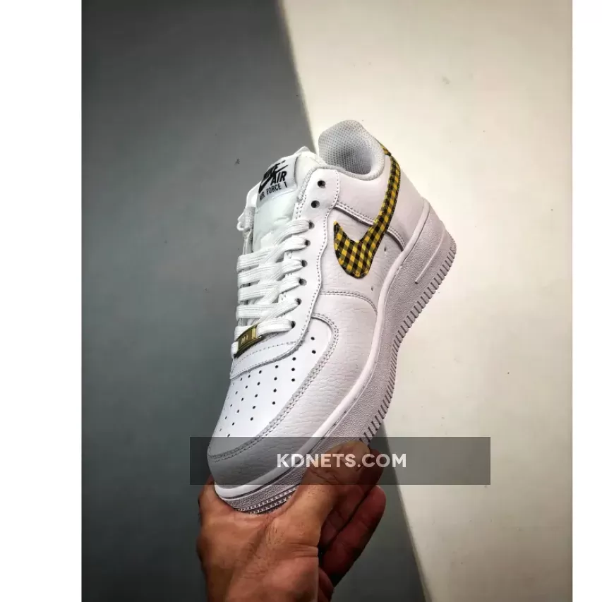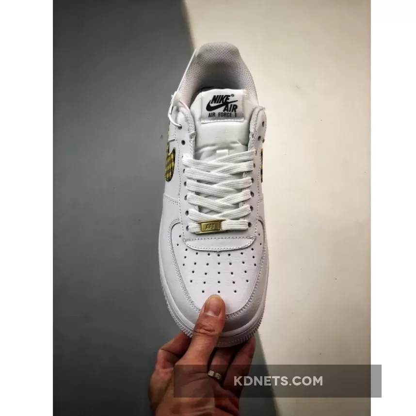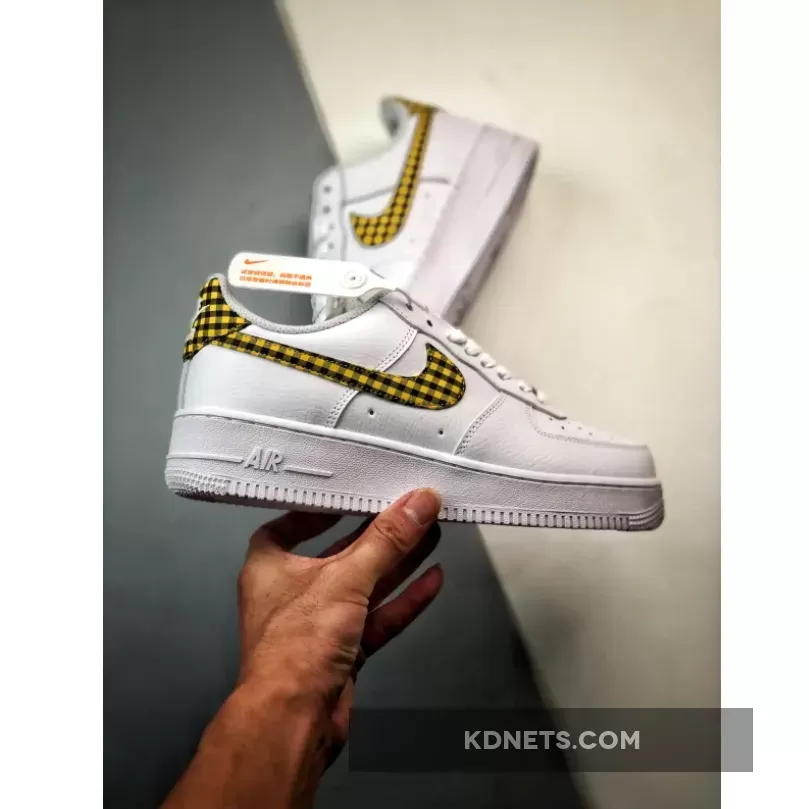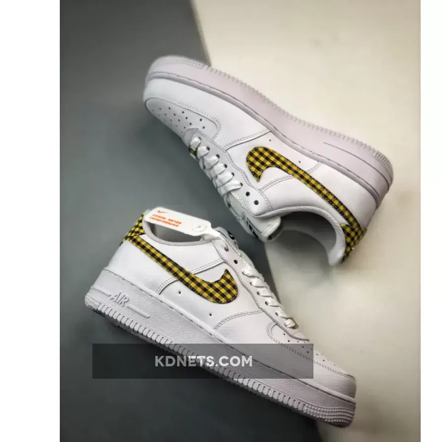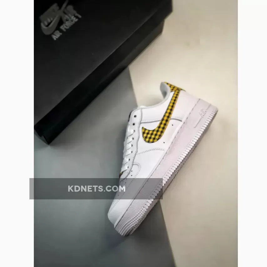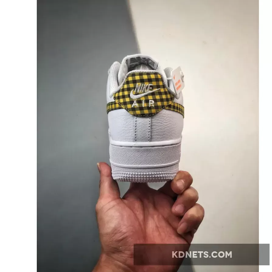 Specifically, this Air Force 1 sports a Summit White, Bronzine, and Black color combination. Constructed with leather throughout, mesh tongues, and perforations on the toe box. Utilizing Summit White across the upper, the highlight of the shoes is the mixture of Bronzine and Black gingham print on the Swoosh logos and heel tabs. More White adorns the tongues, laces, liner, and the rubber sole, while Bronzine drapes the lace dubraes. Other details include Black on the tongue and insole branding, and White ‘Nike Air’ embroidered on the heels.