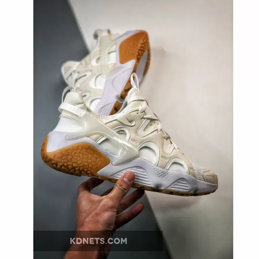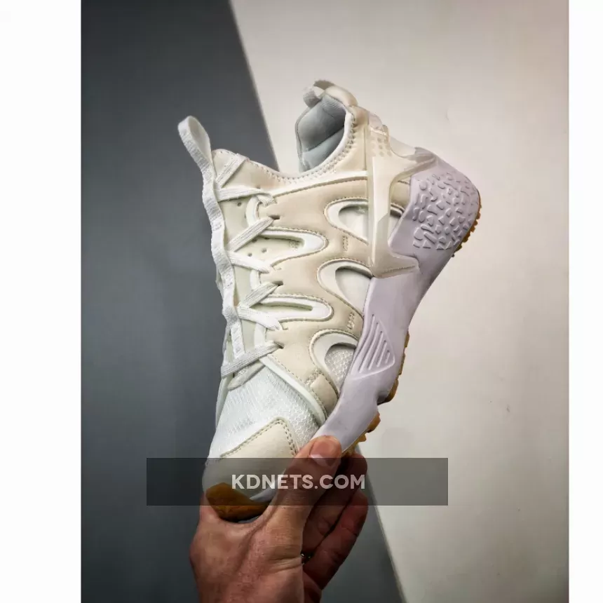 A more statement-making and edgy version of Tinker Hatfield’s sandal-sneaker hybrid design, the Nike Air Huarache Craft Sail Gum is minimalist yet bold at the same time. This offering of the Nike Air Huarache Craft features an Off-White/Sail neoprene bootie with a mesh toe box and suede panels. More noteworthy details include the convenient pull tab and the milky semi-translucent heel clip. This Nike Air Huarache Craft finishes with a soft colourless midsole and textured gum rubber outsole with fun-looking lugs.
