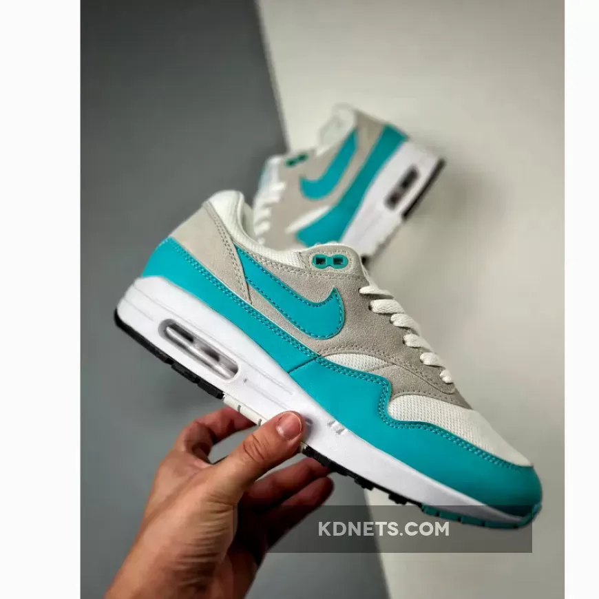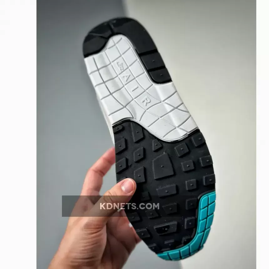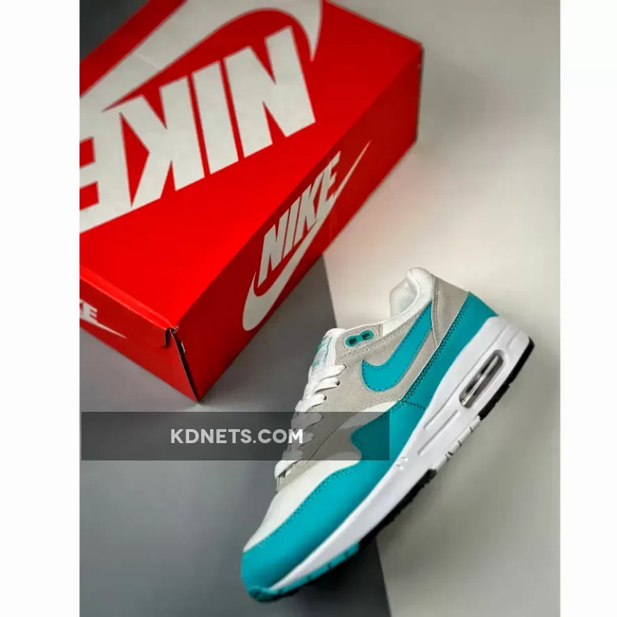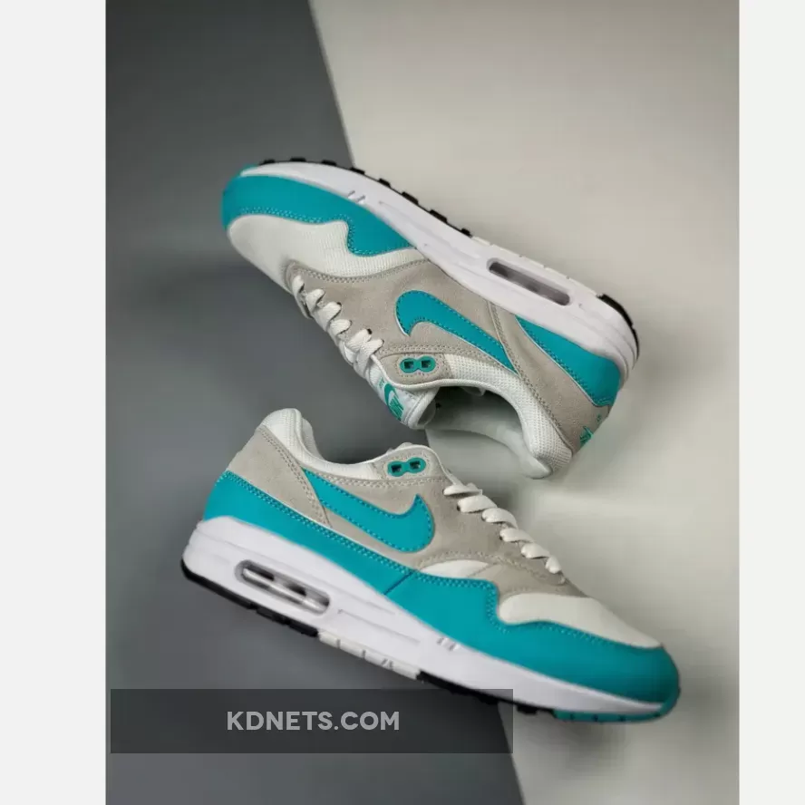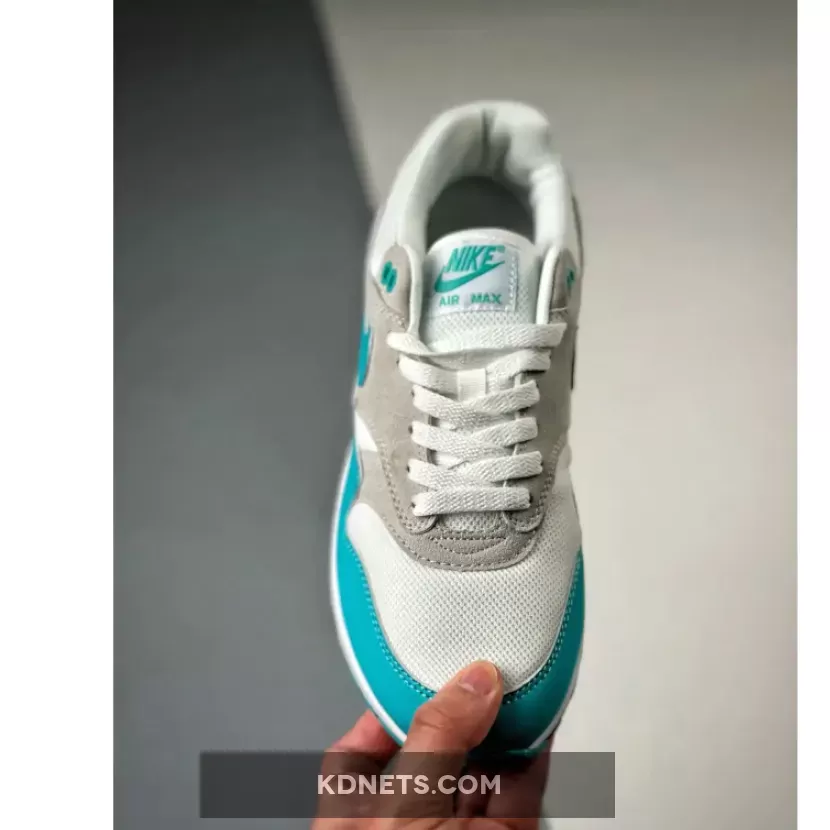 Exercising a staple balance of white mesh and light grey overlays that have iconized the silhouette for well over 35 years, the 1986 reminiscent color blocking receives a contemporary infusion of bright teal hues. Sat atop your standard white midsole, a supple blue leather forms the mudguard and Swoosh, two key panels when creating a new AM1 make-up. The upper eyestays, rear embroidery, and tongue branding also feature the titular hue, while classic white midsoles and tri-color rubber outsoles complete the design.