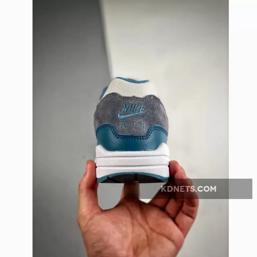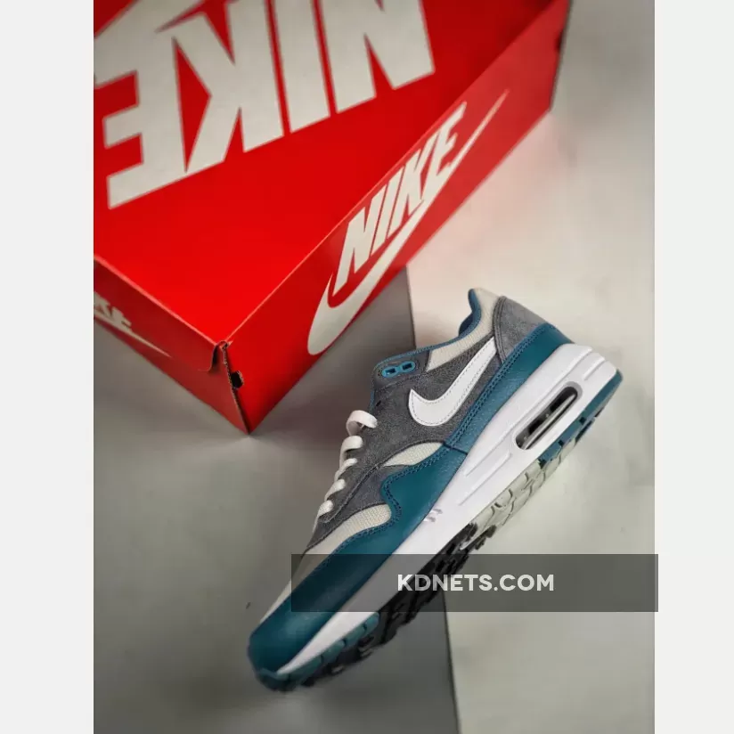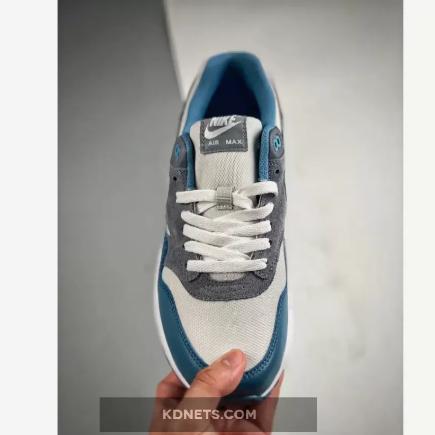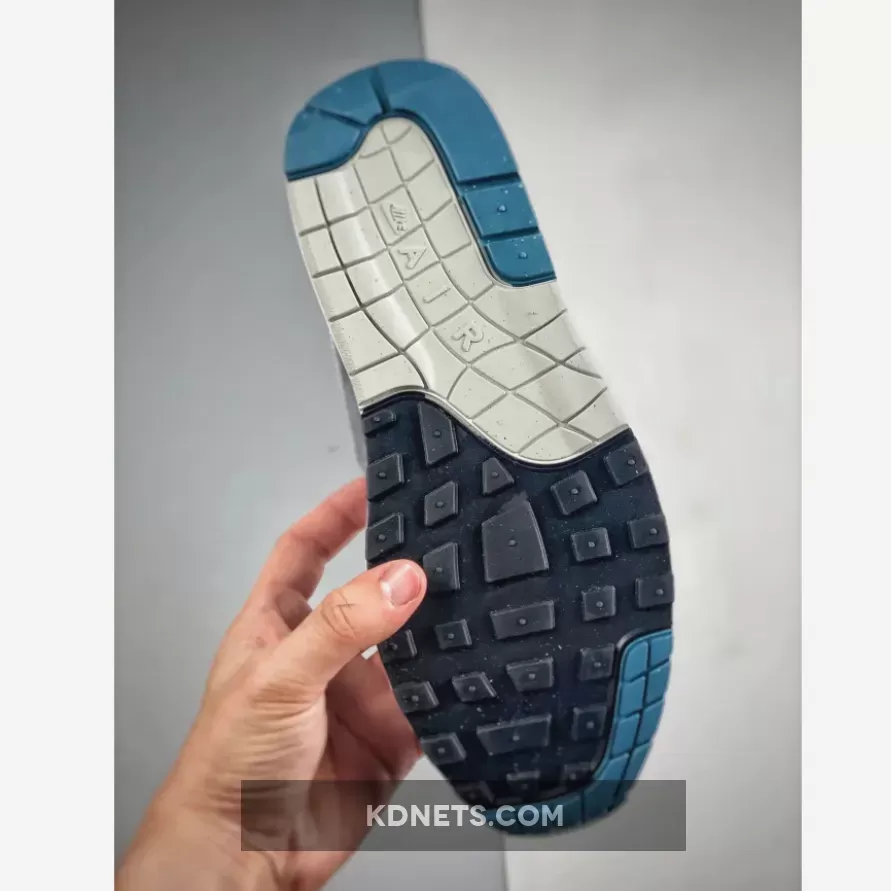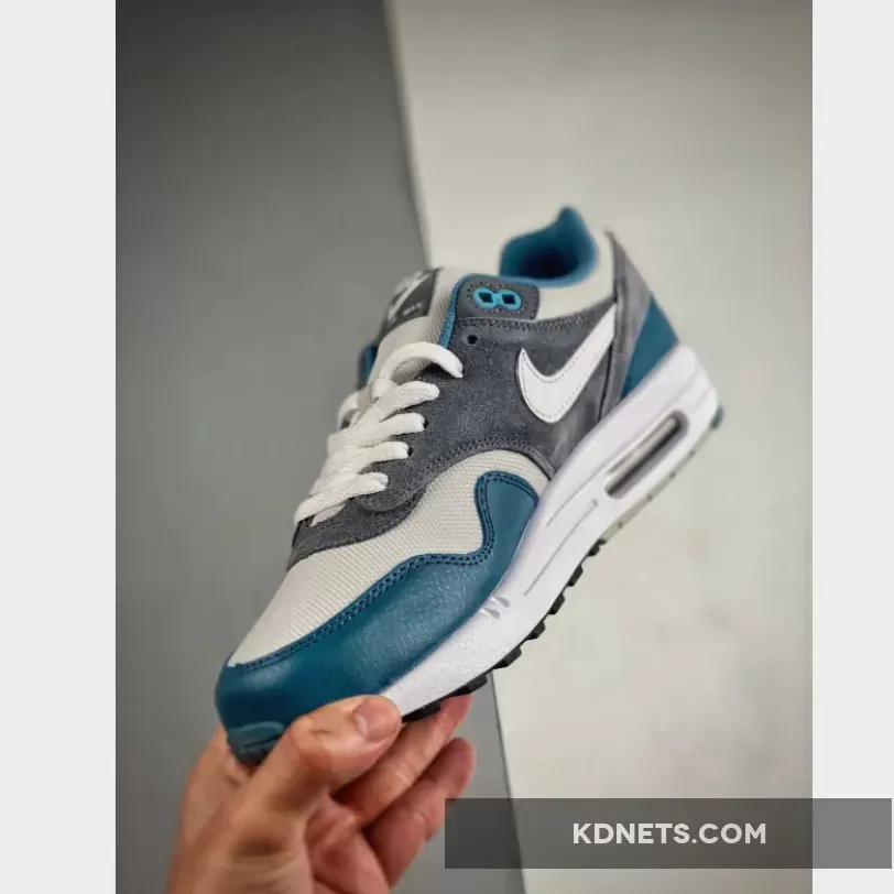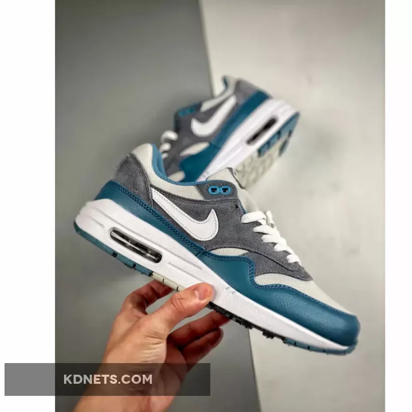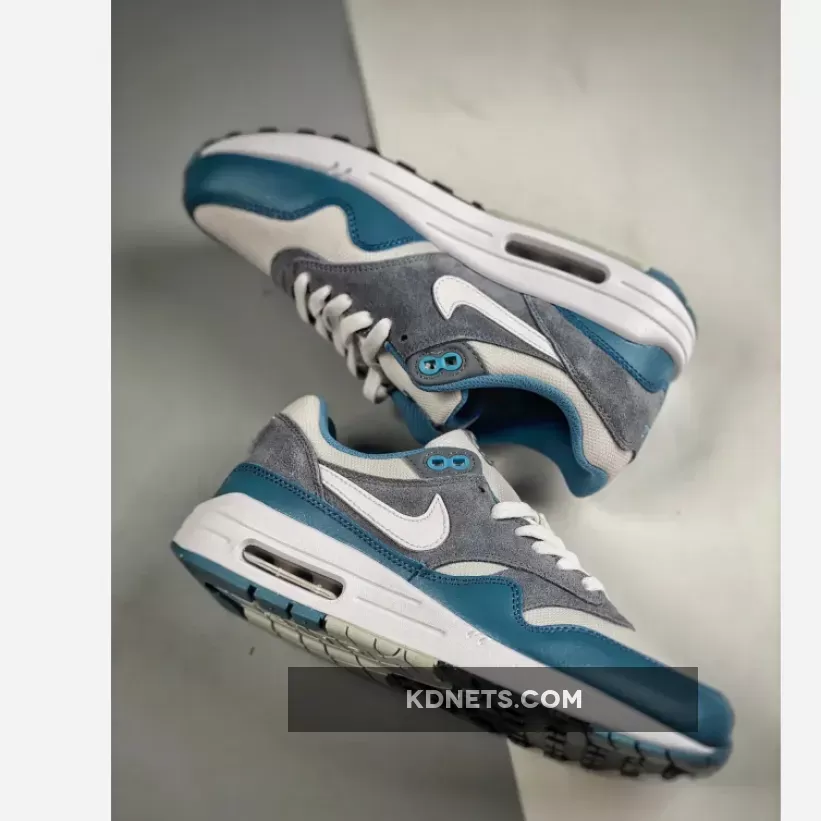 the Nike Air Max 1 SC “Noise Aqua” appears similar to the waves that change shades in response to the movement of the sun in the sky. The upper part of the shoe is constructed using a mesh painted in “Phantom Dust,” which creates a muted background.