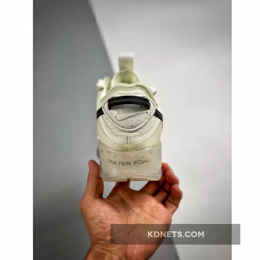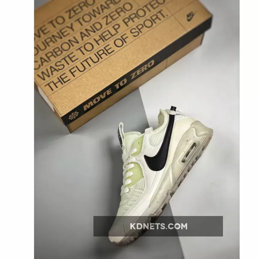 The Air Max 90 Terrascape is an outdoor-inspired iteration of the model that’s constructed with recycled fabrics and materials. Done in a Sail/Black-Sea Glass color scheme, details include a Sail base contrasted by the Black Swoosh, additional branding and heel pull tabs, which happen to be part of the Swoosh hits on the side panels. A finishing detail is the semi-translucent midsole and Crater Foam speckled outsole.
