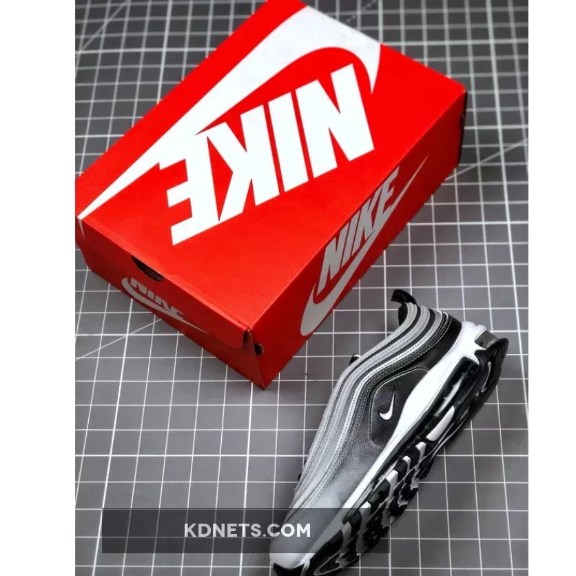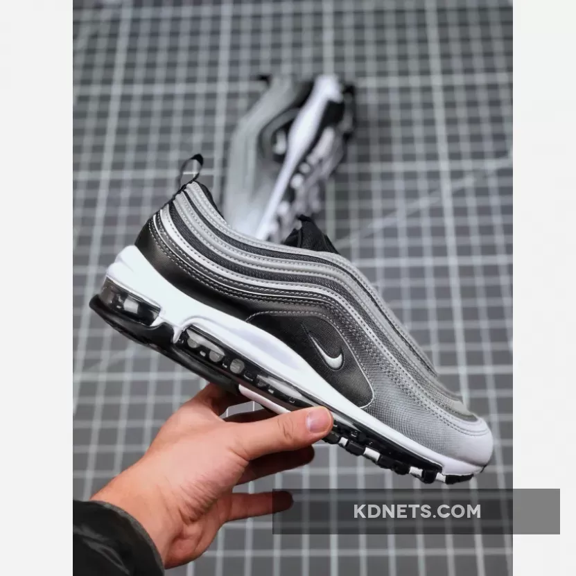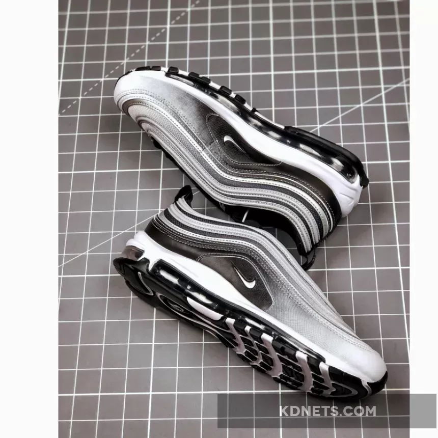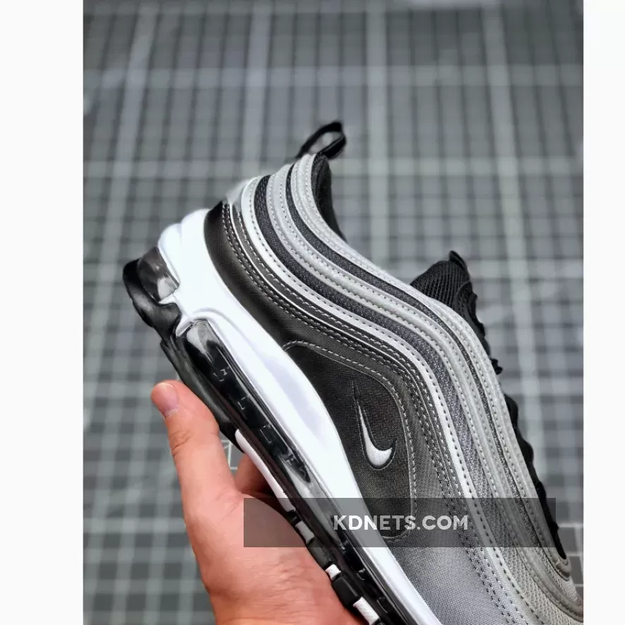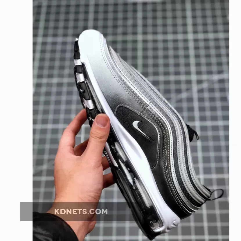 This offering of the Nike Air Max 97 features a White-to-Black faded upper paired with Reflective Silver trimming around the entire shoe.