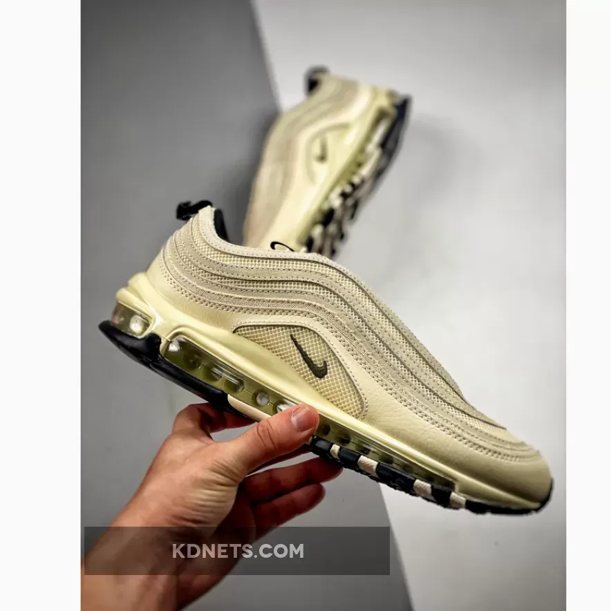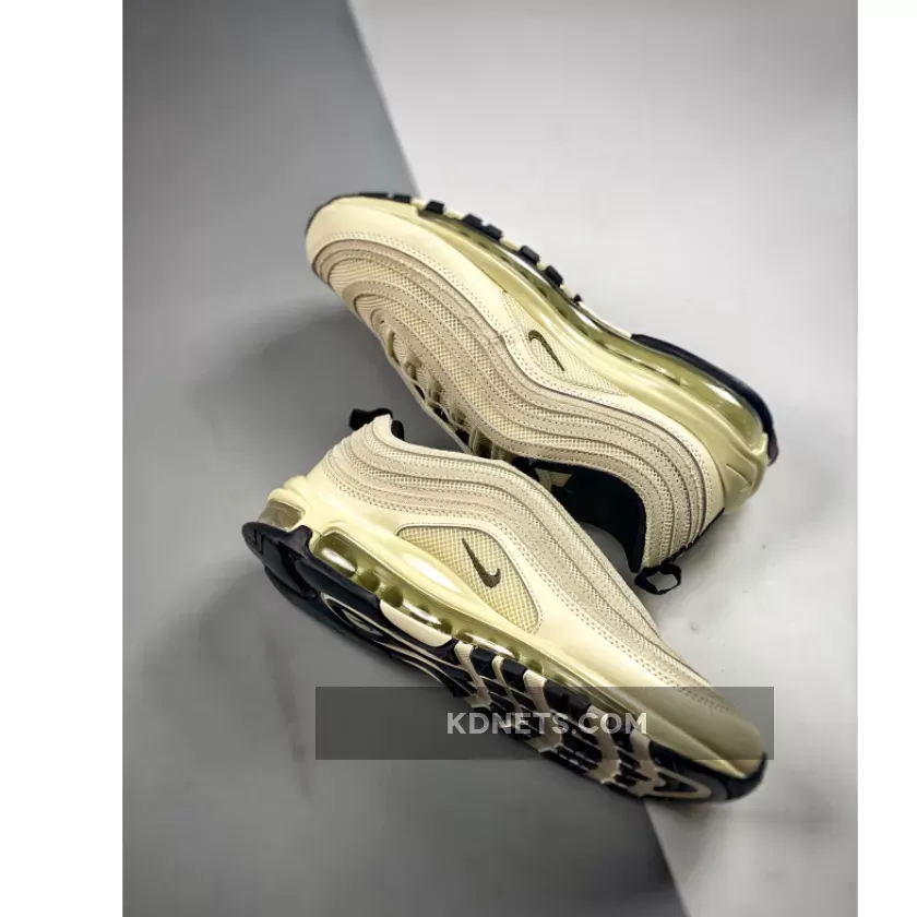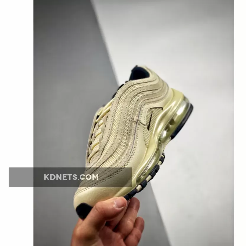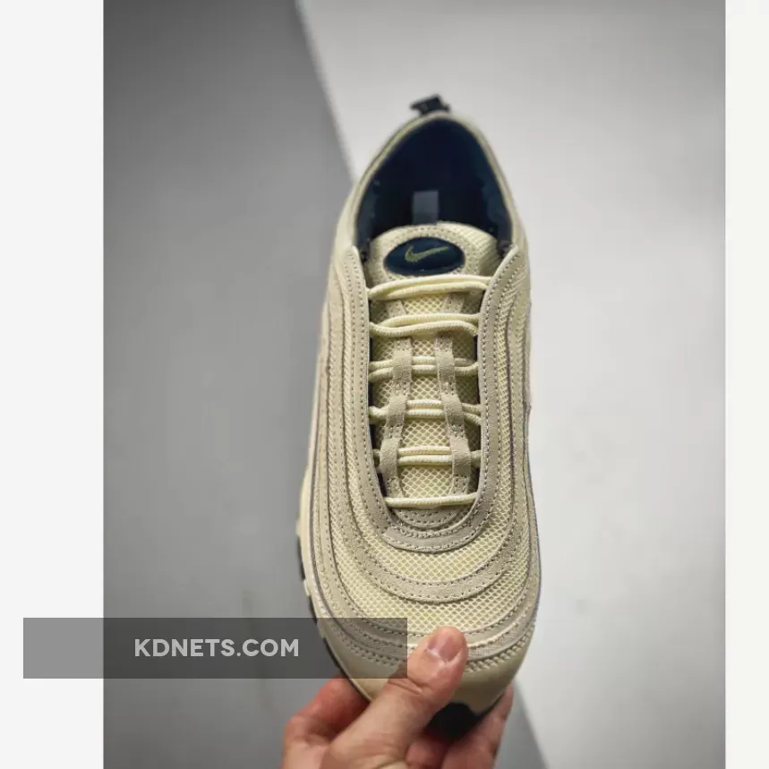 Opting for a mostly tonal appearance, this Nike Air Max 97 gets constructed out of a mesh, suede, and leather throughout the upper in a rich Coconut Milk hue. To contrast the light colored upper we see the addition of Black on the tongue tags, inner liner, insoles, heel tabs, and rubber outsoles. Olive/brown embroidered Swooshes on the side panels and tongue, and a Coconut Milk rubber midsole with a full-length Air Max unit finish off the look on this Nike Air Max 97.
