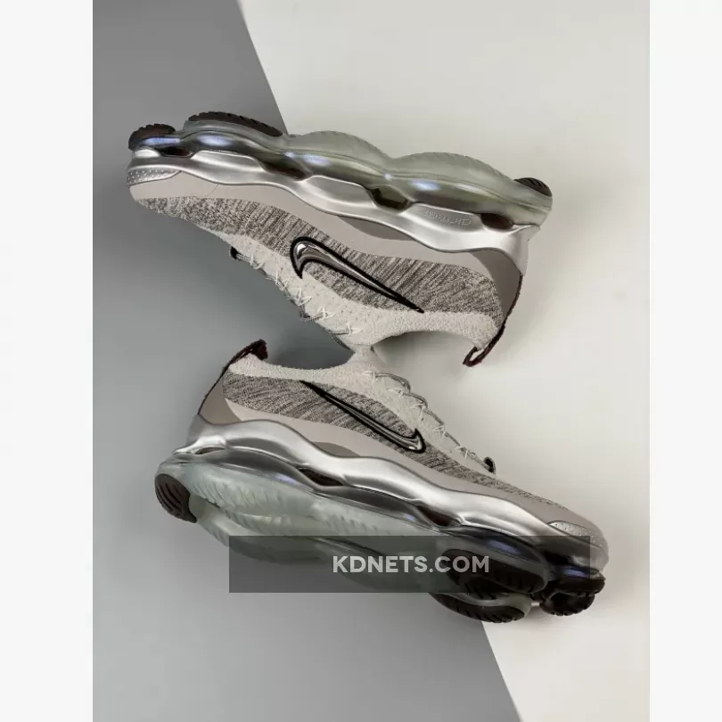 With the model flaunting a clean finish, the sneaker boasts a white flyknit upper that is complemented with hits of tan alongside metallic silver Swooshes that are outlined in black.