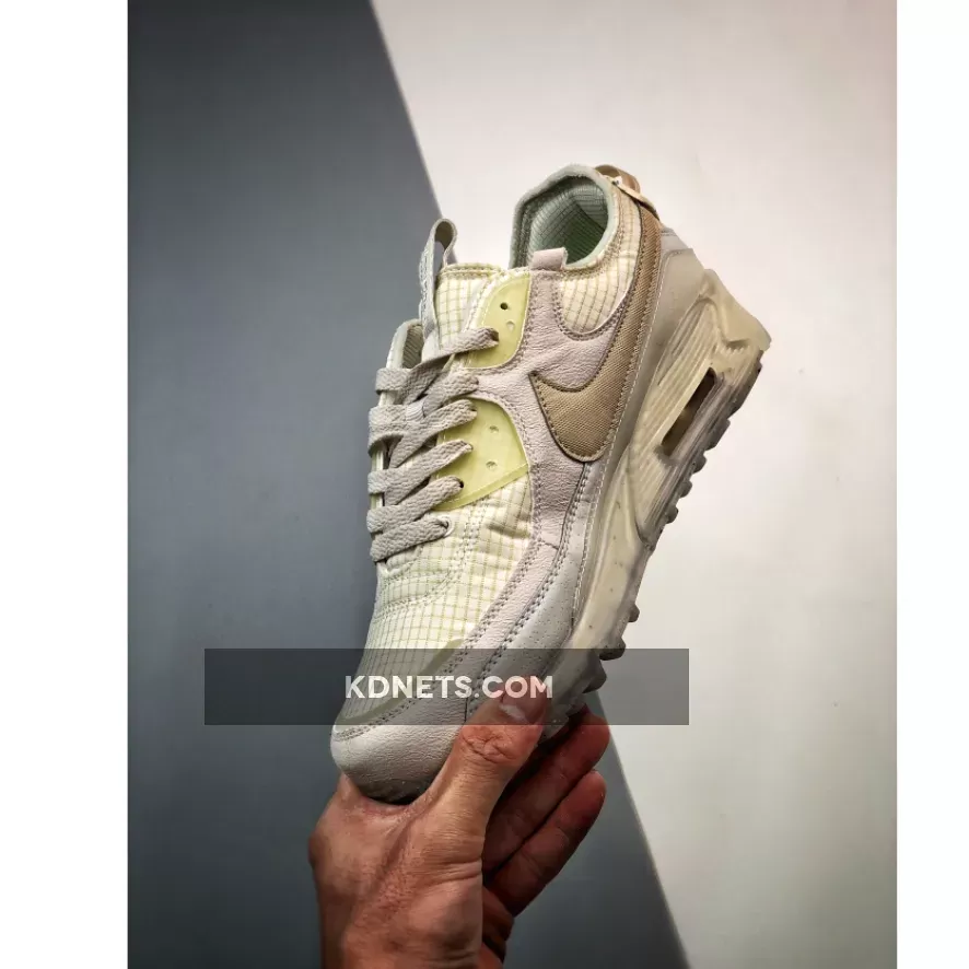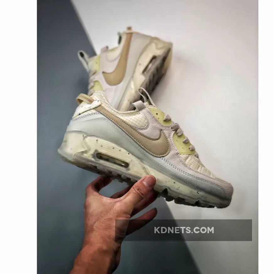 The Nike women’s Air Max Terrascape 90 ‘Light Bone’ applies a neutral monochrome finish to a lifestyle runner inspired by Tinker Hatfield’s 1990 original. The updated build, made with at least 20% recycled content by weight, features a lightweight upper constructed from off-white ripstop textile. Details include translucent TPU eyelets, a webbing pull tab affixed to the heel, and an oversized Swoosh stitched atop synthetic suede overlays. Lightweight cushioning arrives via a Crater Foam midsole, wrapped in a transparent cage and reinforced by a rubber outsole made in part with Nike Grind.
