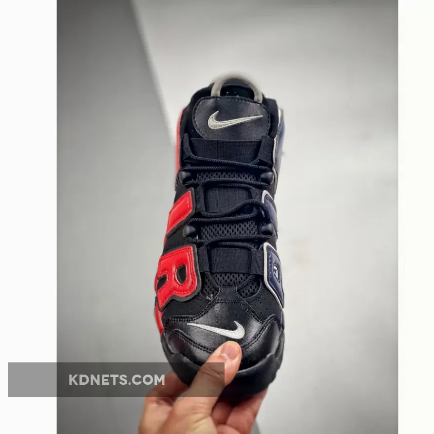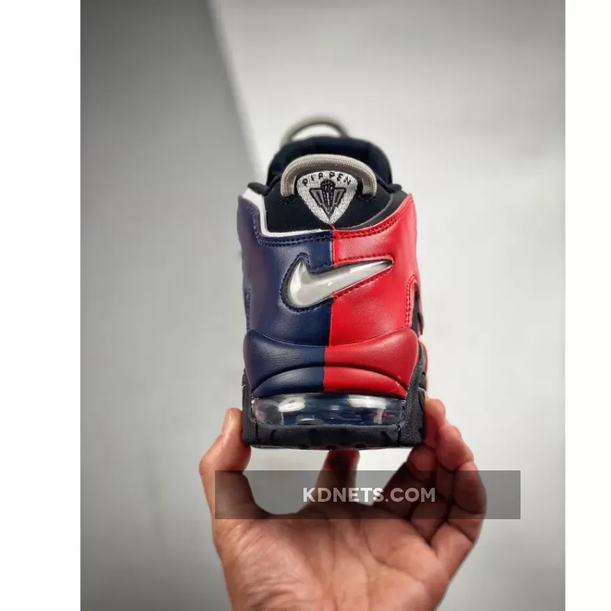 The Nike Air More Uptempo ’96 ‘Split’ honors the NBA athlete who made the shoe famous. Scottie Pippen memorably achieved two career milestones while wearing the performance hoops shoe in 1996: his fourth NBA championship with the Chicago Bulls and his second Olympic gold medal with Team USA. The two feats are reflected in the shoe’s signature ‘AIR’ lettering, rendered in crimson on the lateral side and navy on the opposite side. The rest of the upper is constructed from black nubuck and features Pippen’s personal logo on the heel tab. A two-tone Phylon midsole packs visible Air-sole cushioning for a smooth ride.