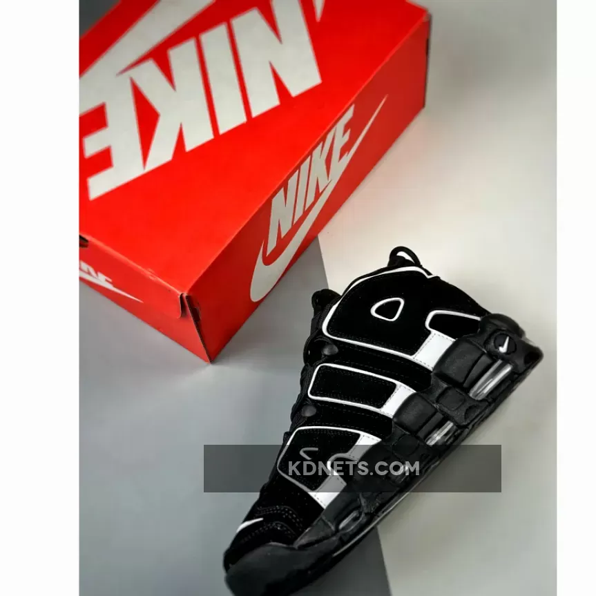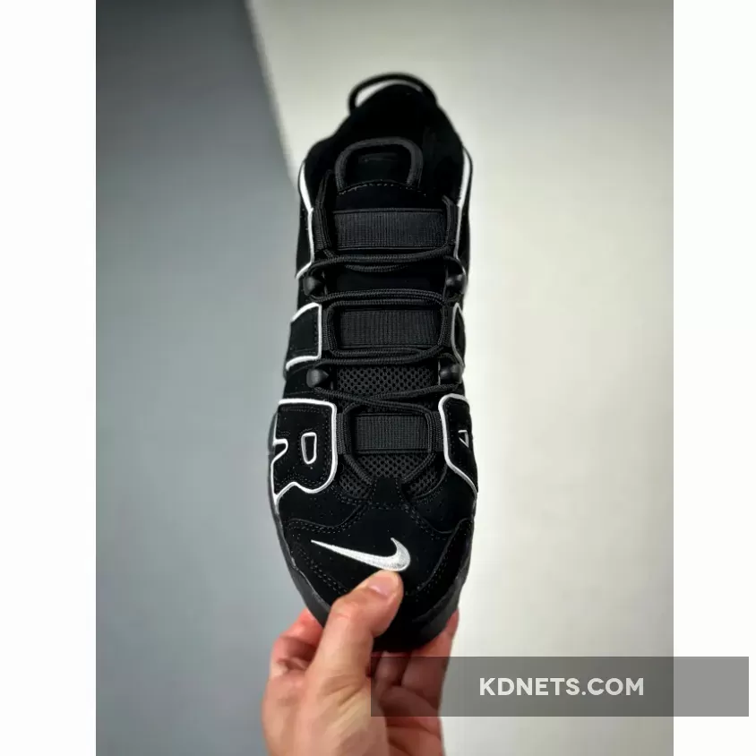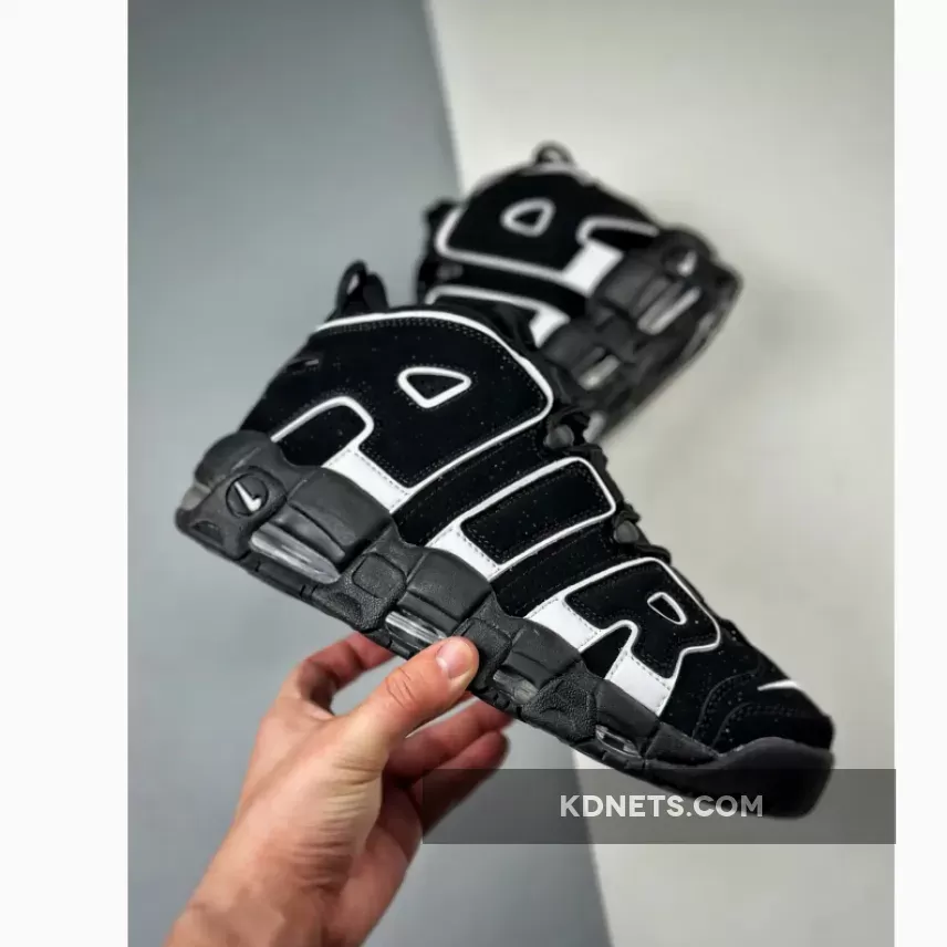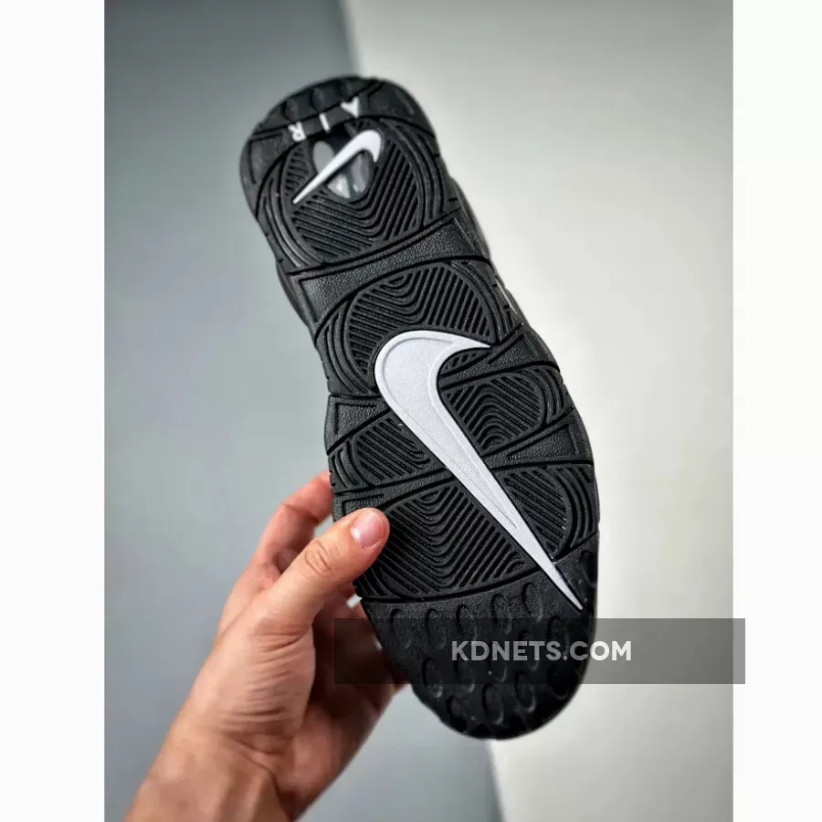 The Nike Air More Uptempo is one of the most remarkable Nike sneakers in 1996. Michael Jordan debuted the Air Jordan 11 in the same year, and the Nike Zoom Air technology was also making its mark. Chicago Bulls’ second superstar Scottie Pippen wore the Air More Uptempo while Mj rocked his AJ11. This bulky basketball shoe features a leather nubuck base with large AIR lettering on the sides. Nike Swooshes sit on the toe box, heel panel, and rear midsole. A full-length Nike Air Max unit provides maximum cushioning, while the segmented herringbone traction pods complete the outsole. This colourway updates the OG Air More Uptempo “Black” with the same colour blocking but with larger white outlines surrounding the AIR on the sides. The Jewel Swoosh on the heel also gets replaced with black.
