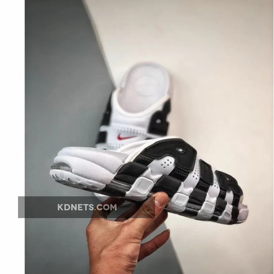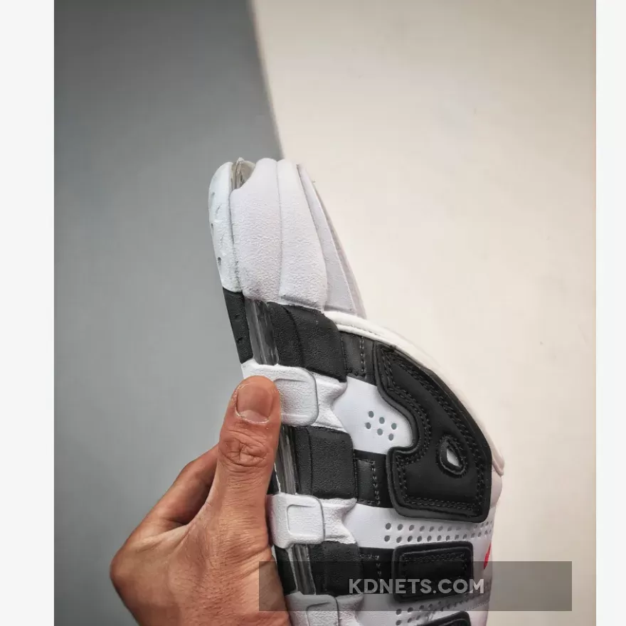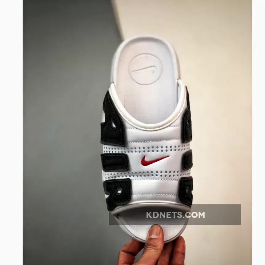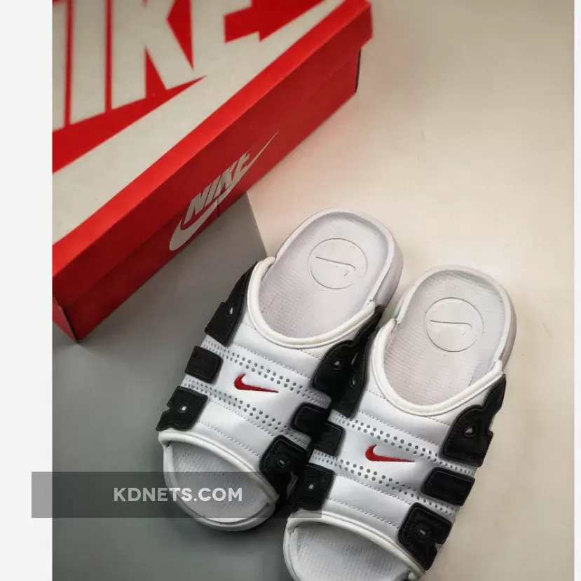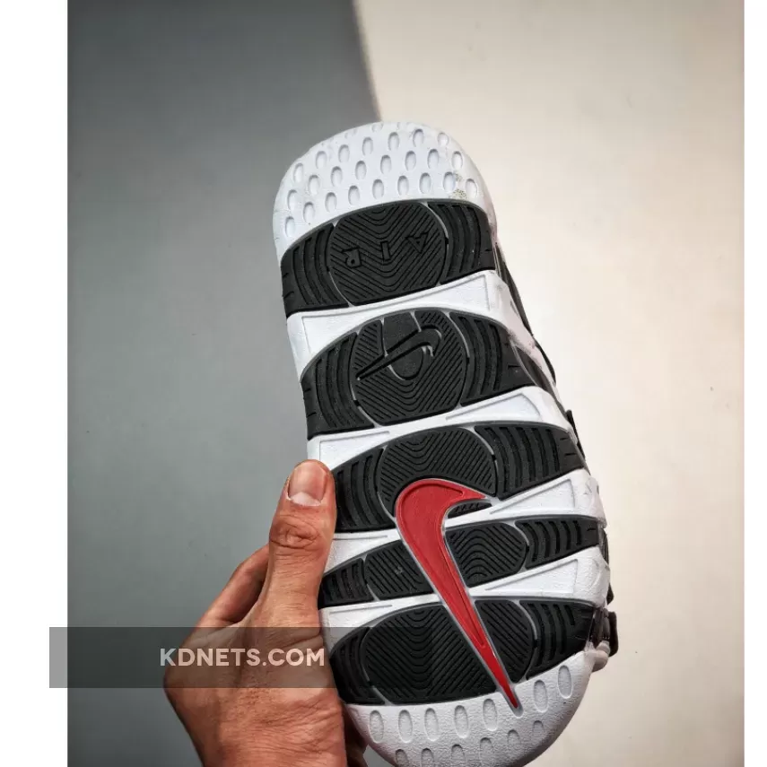 The upper layer of this Nike-designed offering translates the Air More Uptempo hoops shoe by borrowing its oversized, nubuck “AIR” letters and placing them on the lateral and medial walls in black. Beneath that is an angelic white base that features perforations in between each of the aforementioned letters while a pop of red is visible along the Swoosh logo that resides over the bridge of the foot to form a palette that Scottie Pippen would likely appreciate. Footbeds are debossed with a circular Nike logo and come formed with dotted textures that run their length. Black and white stripes coupled with reversed Swoosh insignias on the outsoles mimic the classic hoops-turned-lifestyle product.