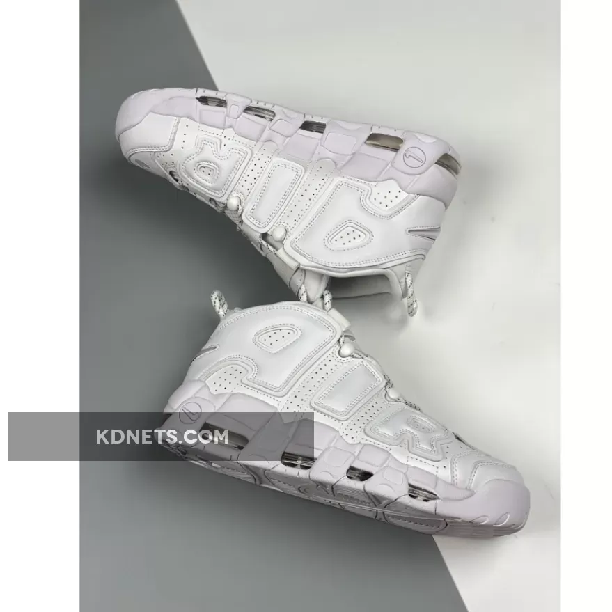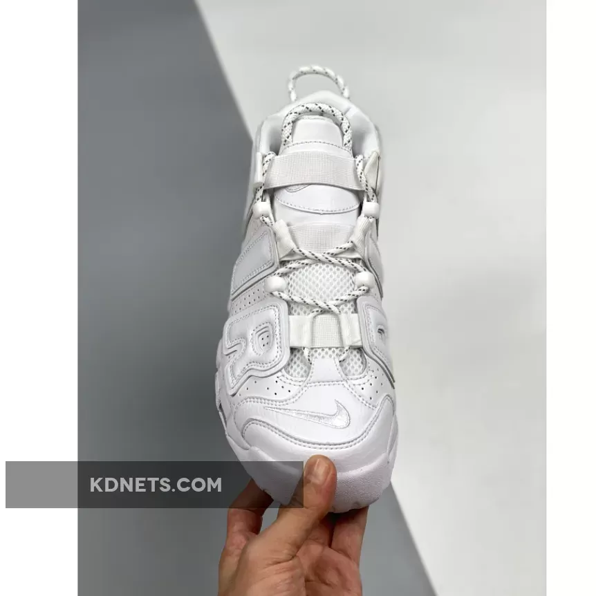 The Nike Air More Uptempo ‘Triple White’ features an all-white leather upper with perforated detailing, white ‘AIR’ branding, and a white sole. The design also includes a full-length, visible Air unit and white and black speckled 3M reflective laces. Released in May of 2017, the sneaker dropped in a three-pack dubbed the ‘Triple White Pack’ alongside all-white colorways of the Air Max Uptempo and Air Max2 Uptempo silhouettes.