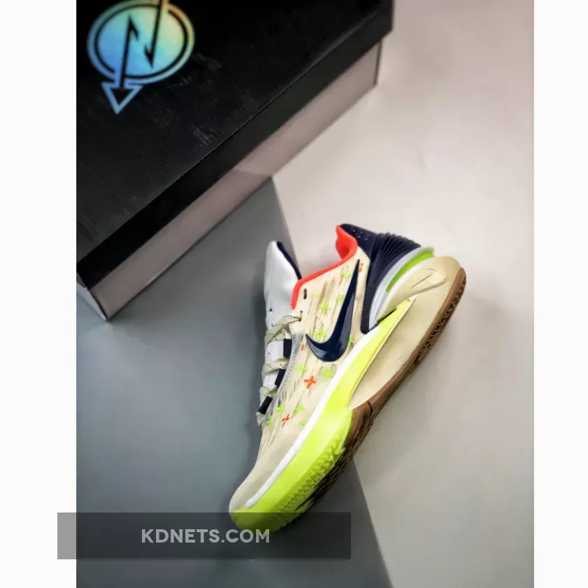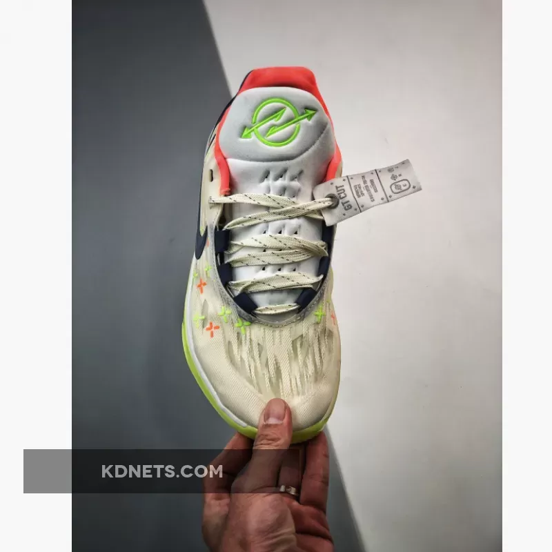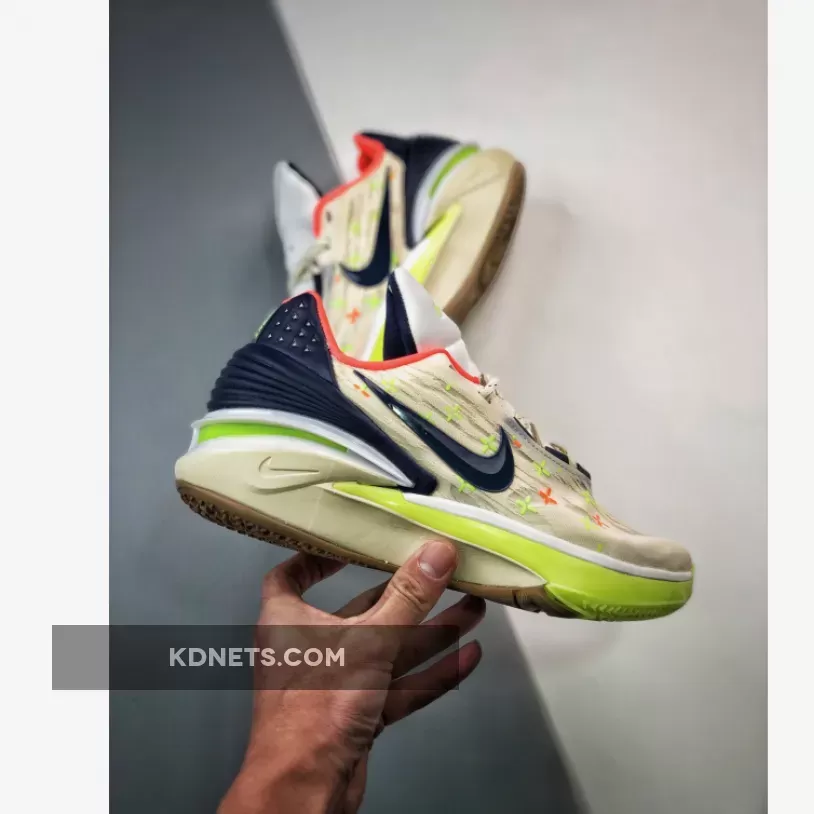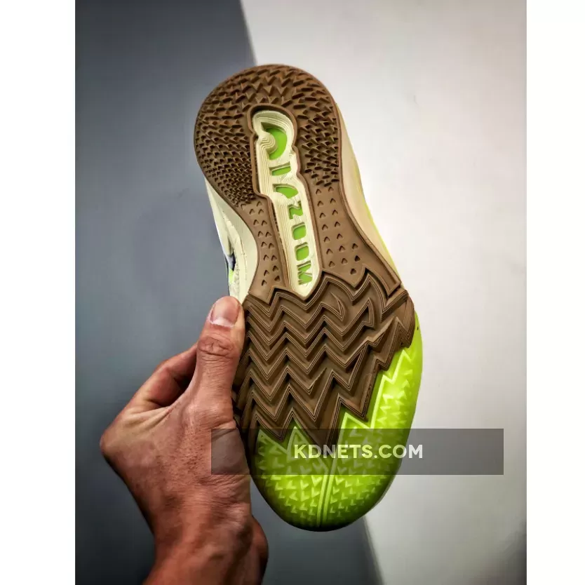 The vibrant Neon seen in the pops over the insoles, forefoot toe guard, forefoot tread and over the tongue insignia is the most noticeable accent in the silhouette. The lateral side of the shoes has a neon midsole, whereas the medial side has a tonal bone hue that extends over the midsoles.