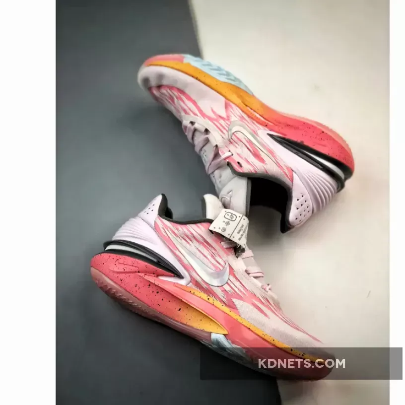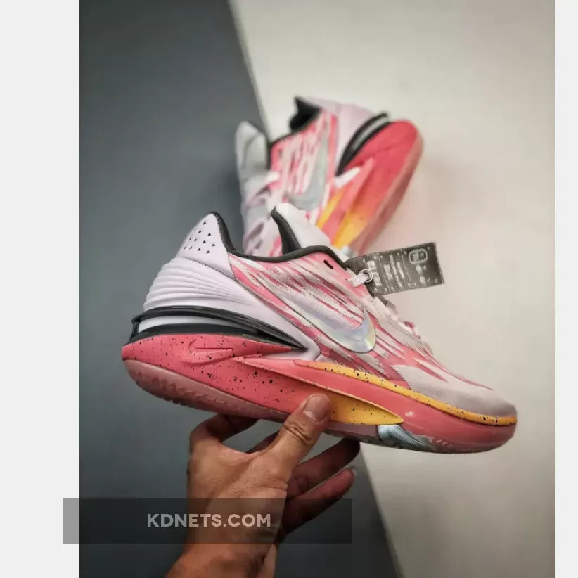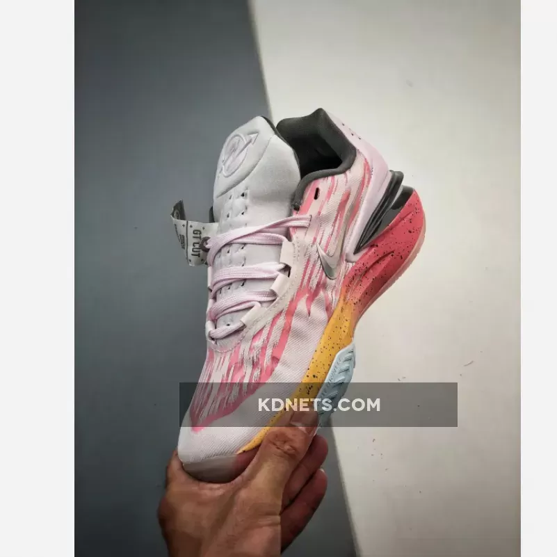 Touching down with a pearl pink mesh construction, the lateral and medial sidewalls are equipped with a shiny iridescent Swoosh that’s made to turn heads wherever you go. The GT Cut lightning bolt logo adorns the plush tongue, and around the heel, the newly-developed counter is accented in a light grey scheme.