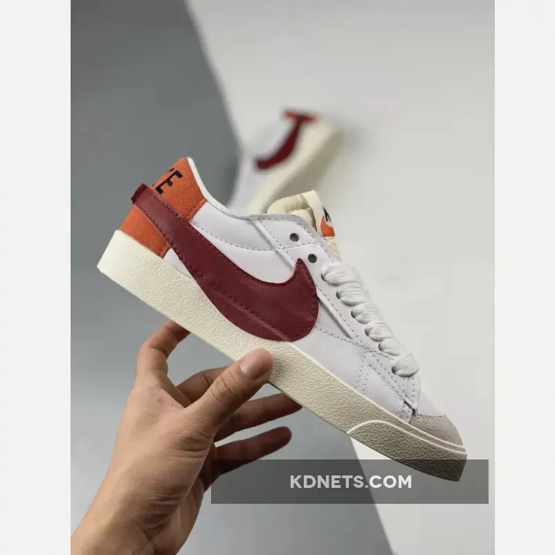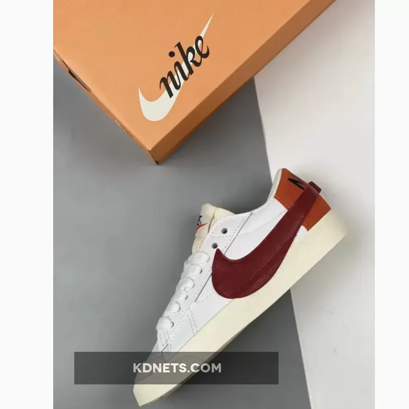 This offering of the Nike Blazer Low features a White leather upper with suede up front and Red in the rear. A darker shade of Red is used on the Jumbo Swooshes with Black branded padded tongues and heels. A solid White rubber sole completes the design.
