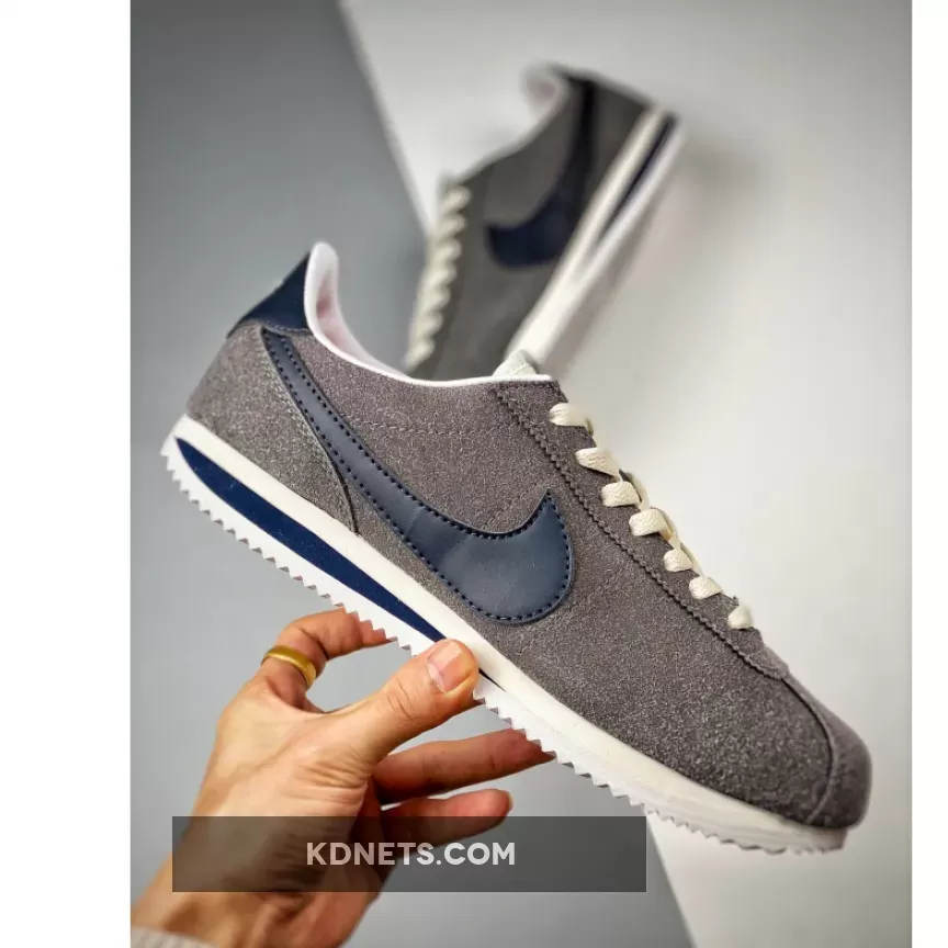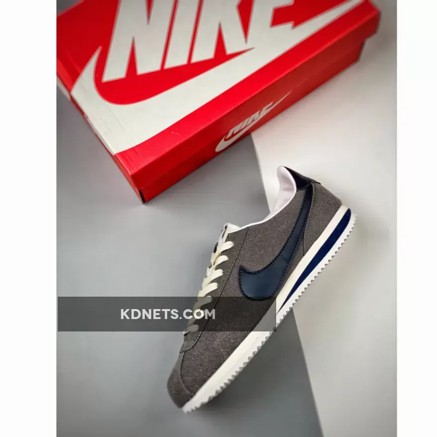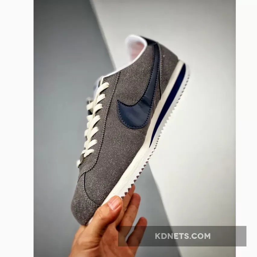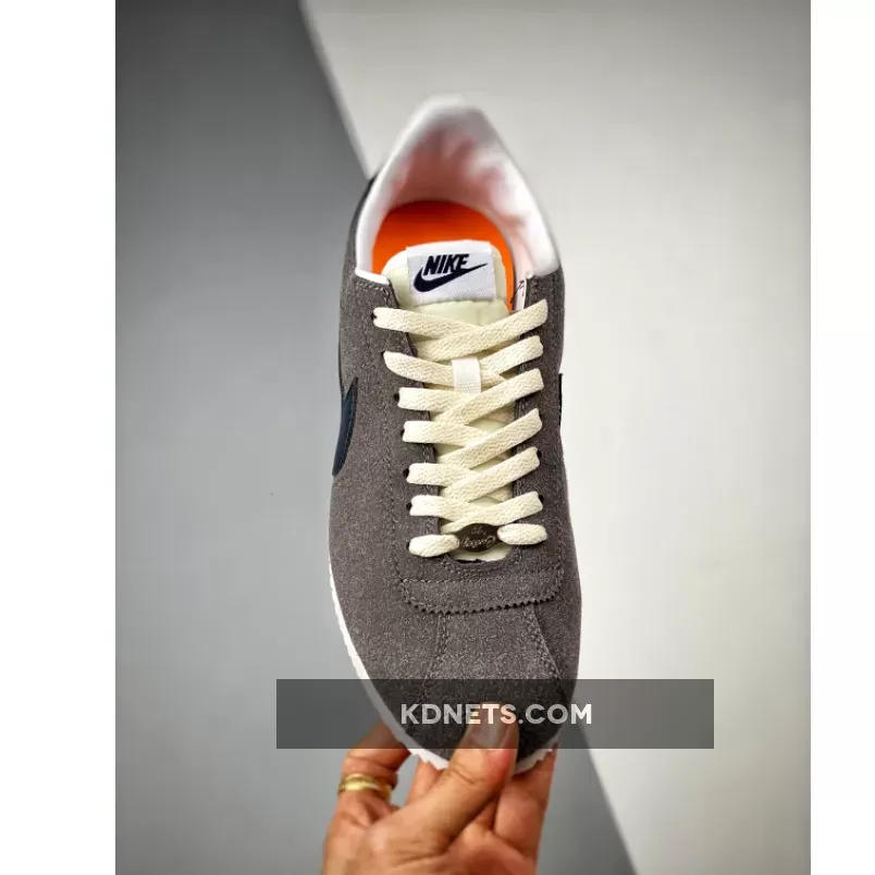 Nike’s OG running shoe, the Cortez, has a new variant honouring Georgetown University’s college basketball team, the Hoyas. Presenting the Nike Cortez Georgetown. This Cortez is clad in an all-grey suede upper from heel to toe. The Sail-coloured laces and nylon tongue contrast with this dark background. Another Hoya team colour joins the mix in the form of the navy blue smooth leather signature profile Swooshes on both the medial and lateral mid-panels. The insoles are bright orange with white Nike branding. The branding on the white tongue labels also follow suit.