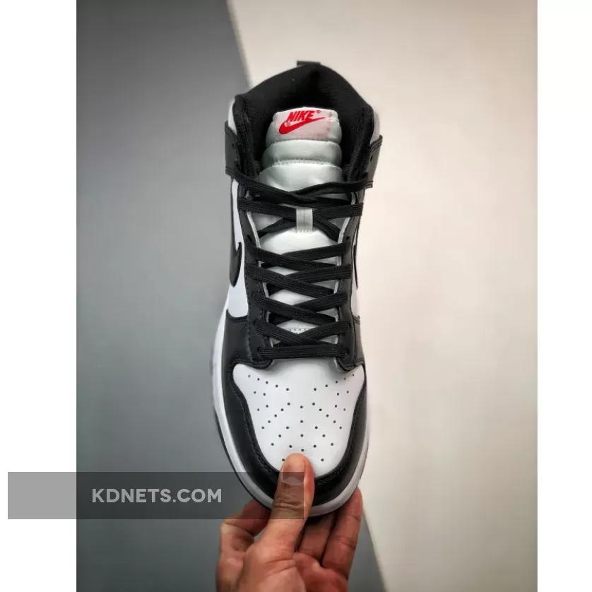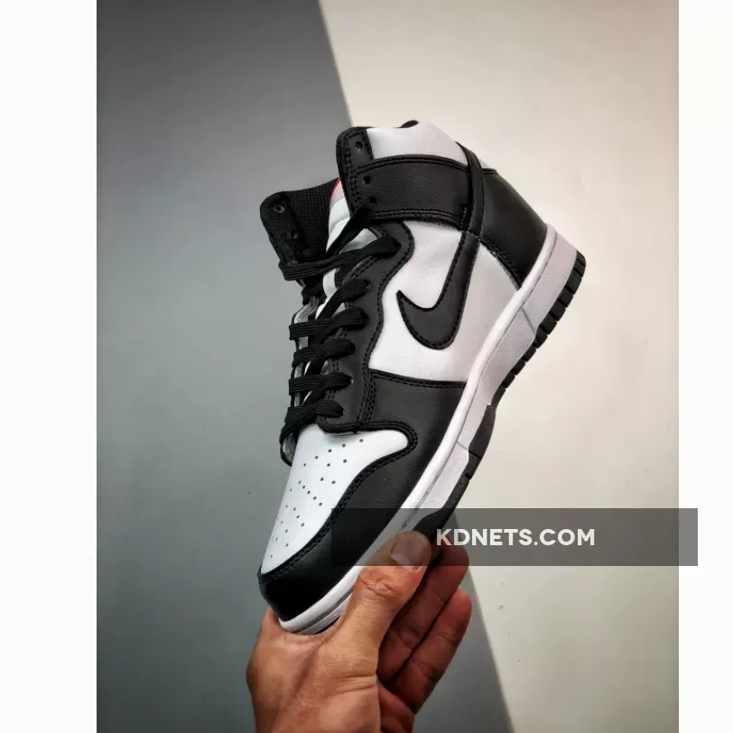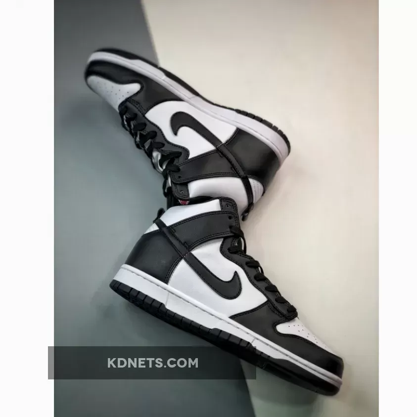 The Nike Dunk High ‘Black White’ also known as ‘Panda’ brings an elemental two-tone design to the heritage silhouette. The color blocking and materials are true to the original 1985 release, highlighted by a leather upper in sharply contrasting black and white tones. Atop the lightly padded nylon tongue, a woven tag displays crimson Nike branding for an unexpected flash of color. Underfoot, the rubber outsole features a time-tested traction pattern originally developed for the collegiate hardwood.