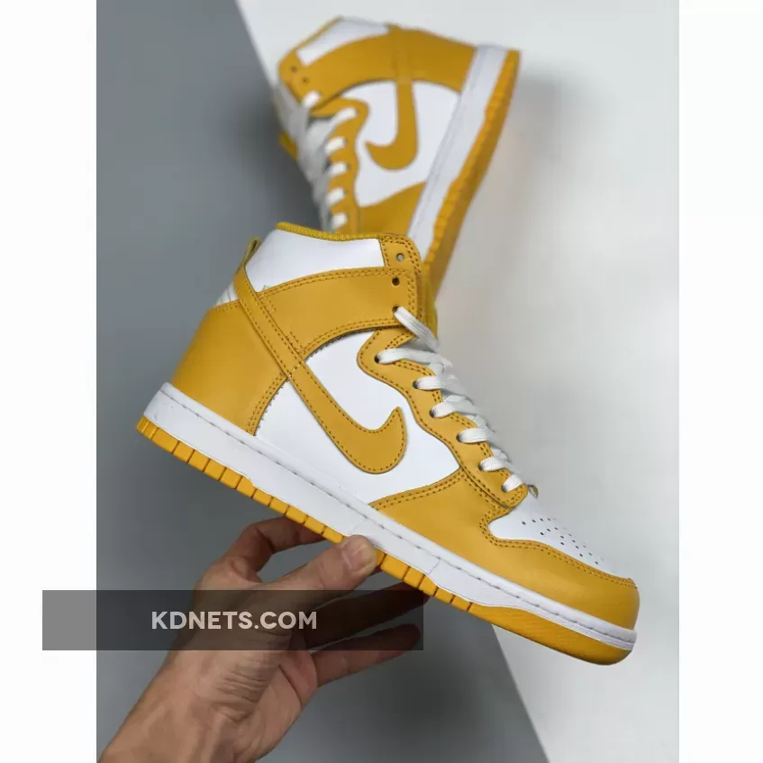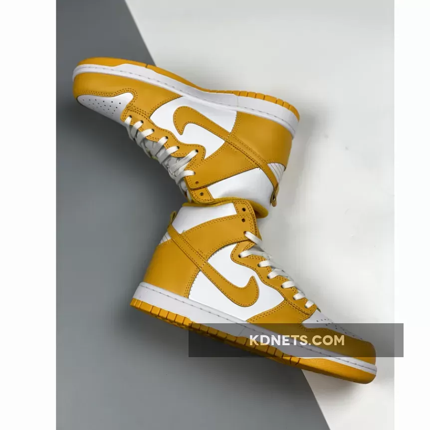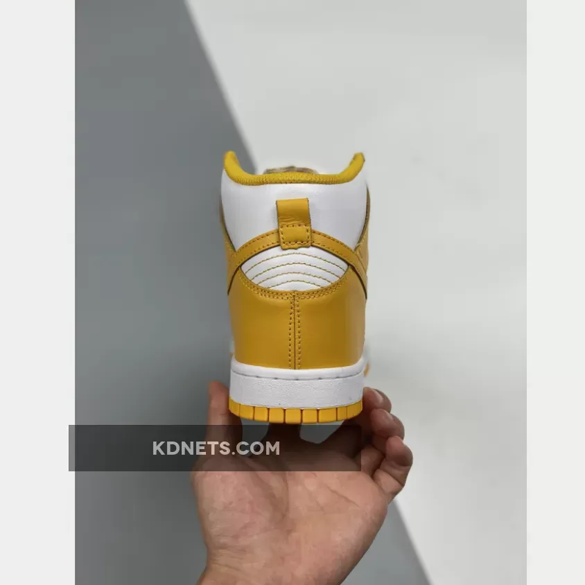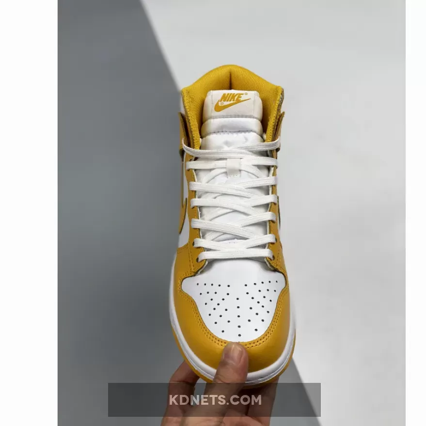 “I’m totally stoked with my Nike Dunk High White/Dark Sulfur! 👟 The premium leather is top-notch and the Dark Sulfur accents really make it pop. 👍 Comfortable too – 5 stars!”