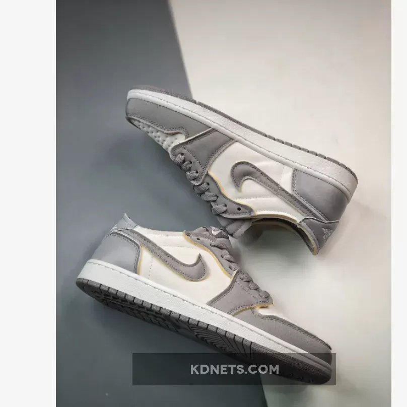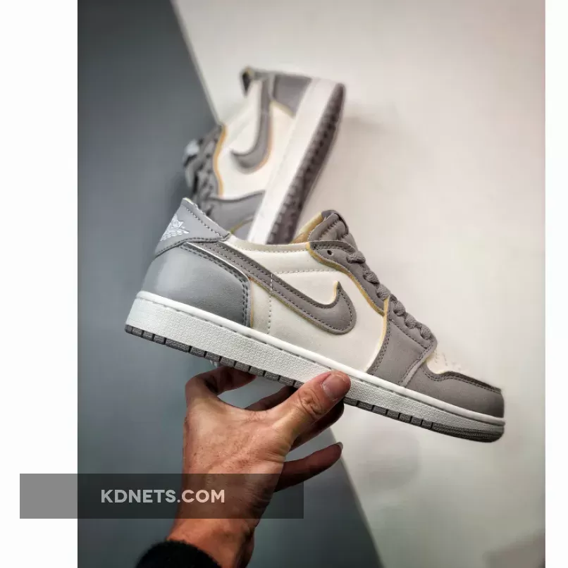 The deconstructed version of the standard Air Jordan 1, the Air Jordan 1 Low OG EX, has a new iteration in neutral white and grey. Get ready for the air Jordan 1 Low OG EX Tech Grey. This low-cut AJ1 OG EX has a “colourless” white textured base. The overlays on the toe cap, mudguard and eye stay panel are textured Tech Grey leather showing off exposed foam at the edges. The signature profile Swooshes on both sides of the shoe are the same textured leather and colour. The heel counter and heel tabs are the same colour and have the same exposed-foam treatment. The only difference with these panels is their smooth texture.