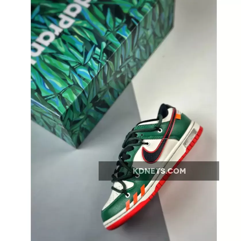 In colorway, the pair mirrors parts of the institution’s logo. The greendish orange of its backdrop, for example, is cast atop the toe, eye stay, and sole, while the fixtures both underneath and adjacent opt for black and white neutrals. And though it may seem simple at first glance, the pair is complete with a special, commemorative tongue label and a diamond-imprinted dubrae.