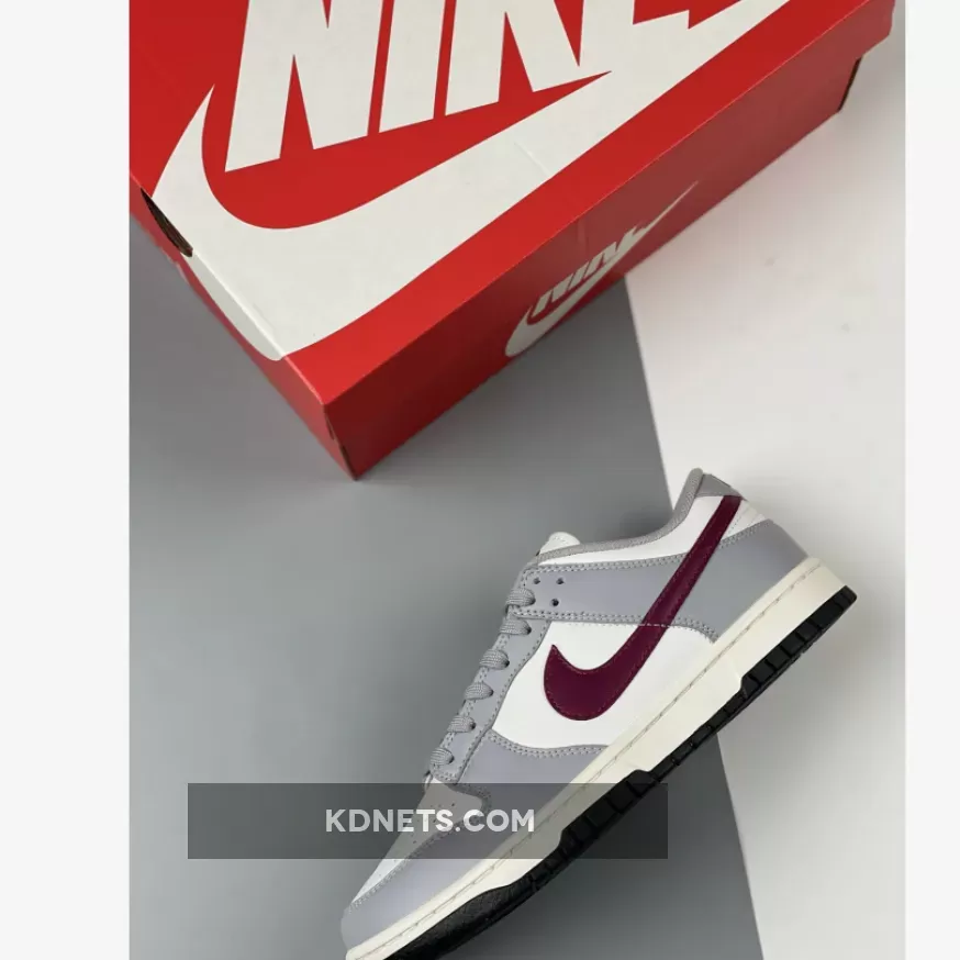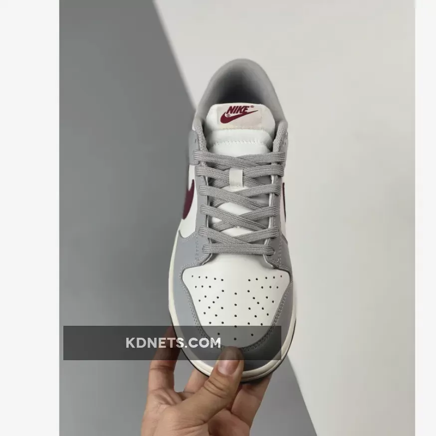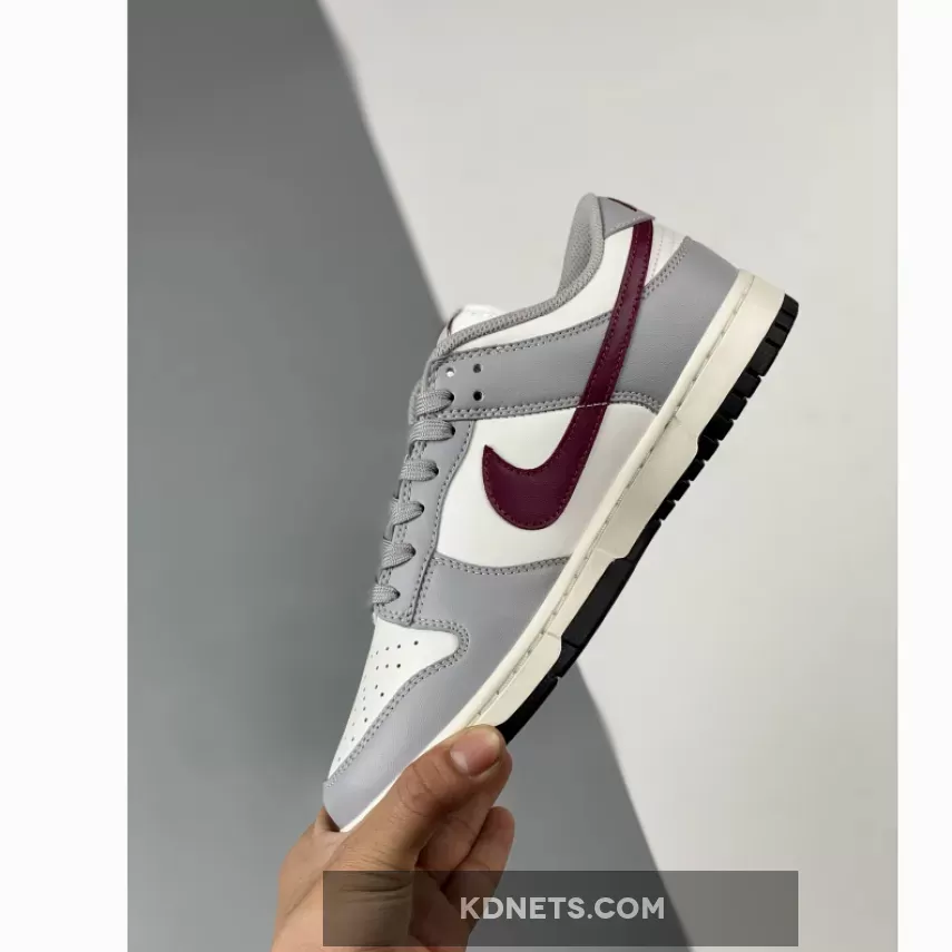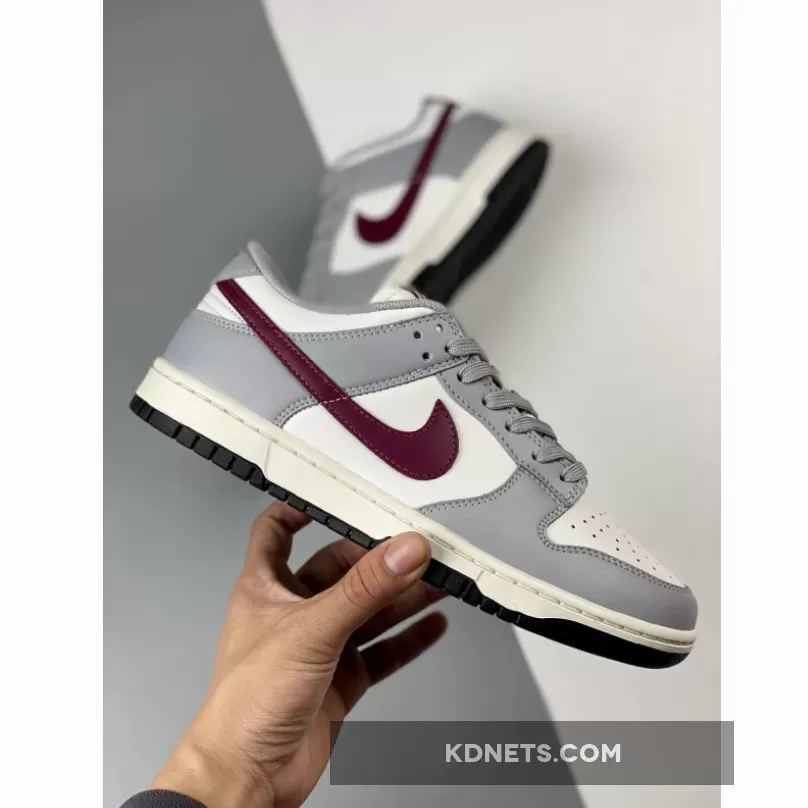 Peter Moore’s famous shoe design gets another versatile iteration. Meet the Nike Dunk Low Grey White Burgundy.