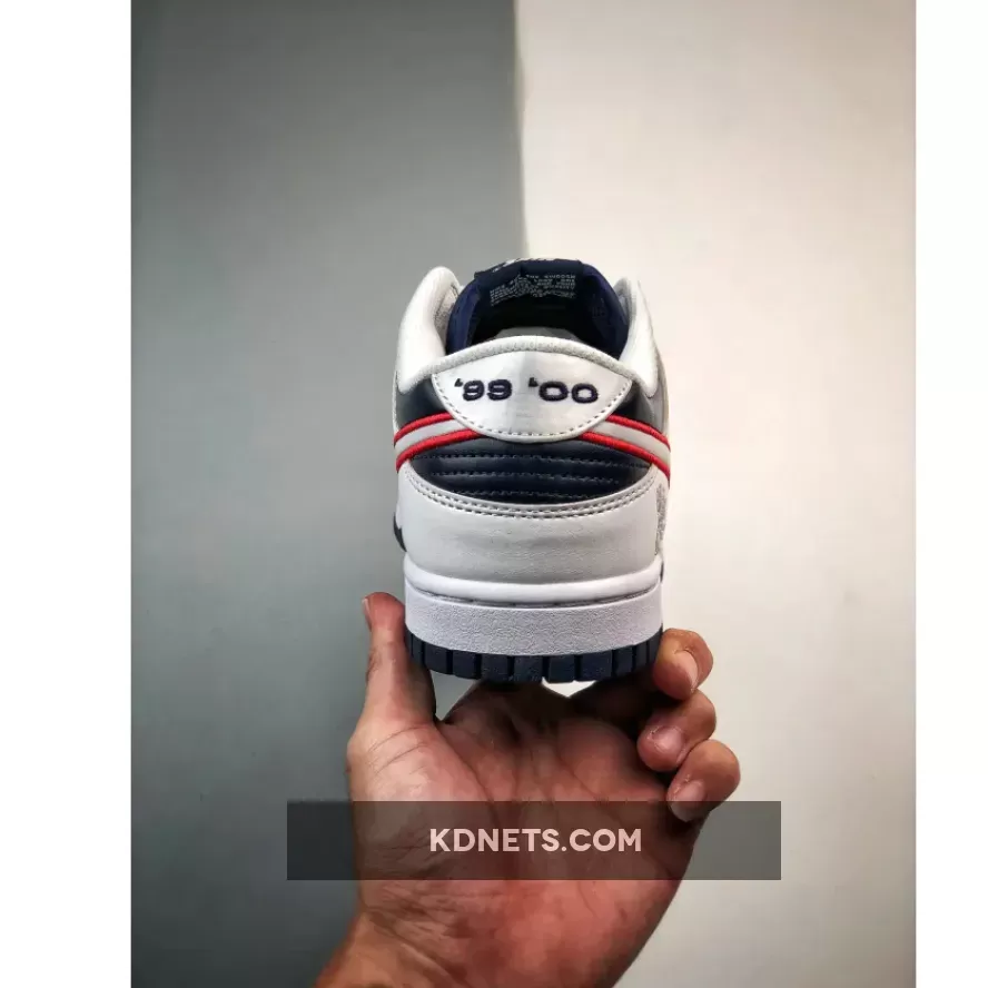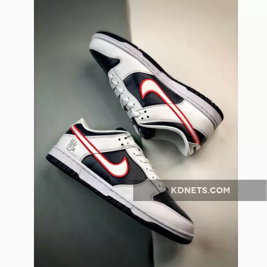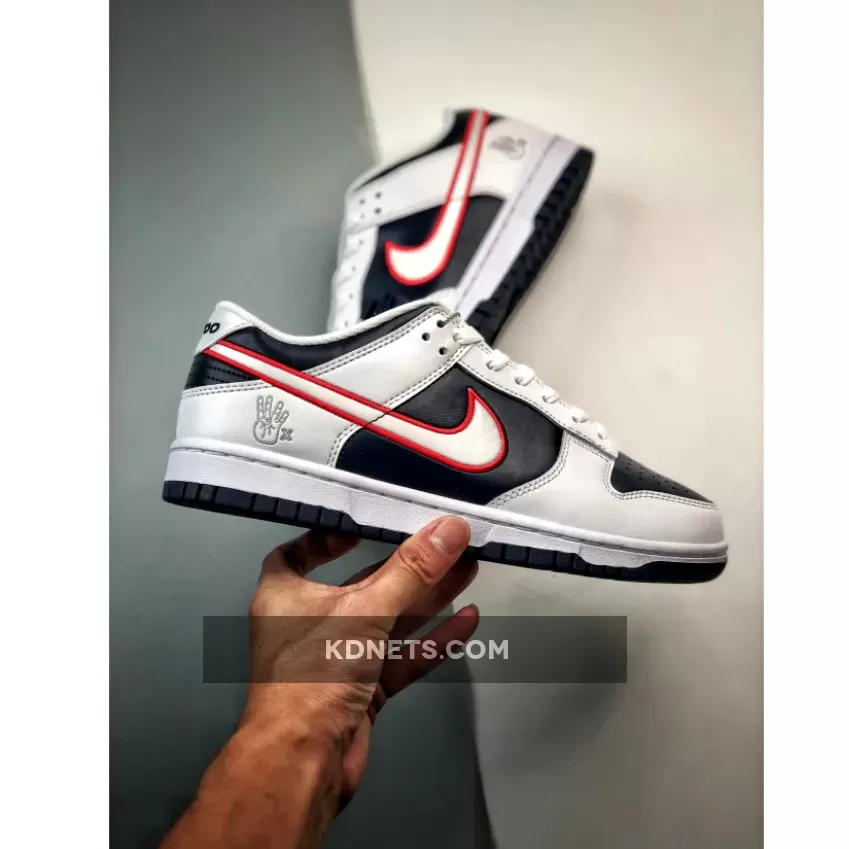 the Nike Dunk Low “Houston Comets Four-Peat” has an “Obsidian” leather base with “White” leather overlays and a “University Red” Swoosh that create a patriotic blend. The legendary four-peat is symbolized on the heel counter as it boasts a hand putting up the number four with a small times symbol (x) next to it. The sneaker is finished with consecutive championship years on the heel tab ranging from ’97 to ’00.