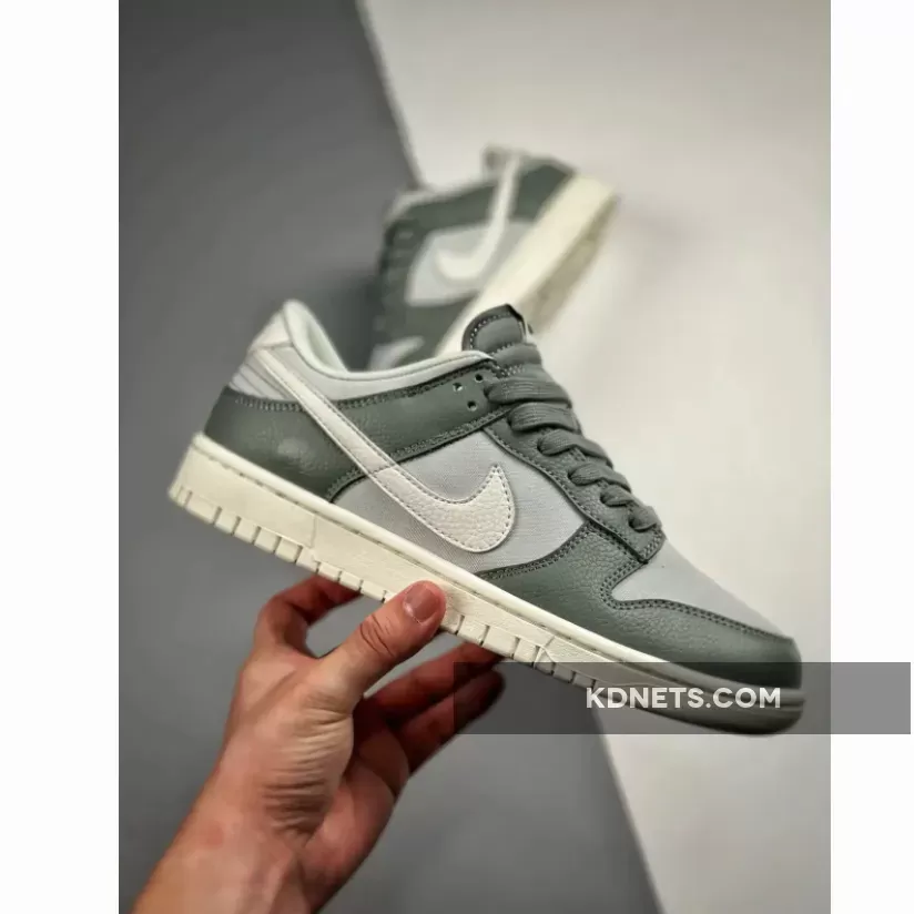 This premium Nike Dunk Low “Mica Green” features a canvas base and tumbled leather overlays, the former dressed in “Photon Dust” and the latter in the titular hue. Further adding to this colorway are the “Sail” tumbled leather Swooshes, midsoles and heels, as well as the “Mica Green” laces.