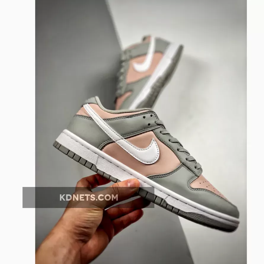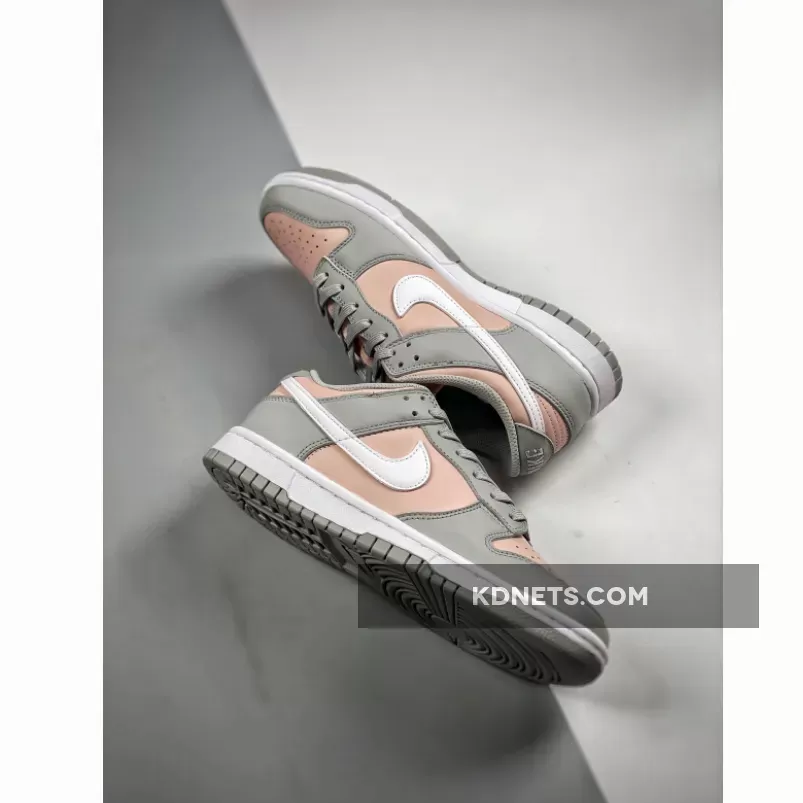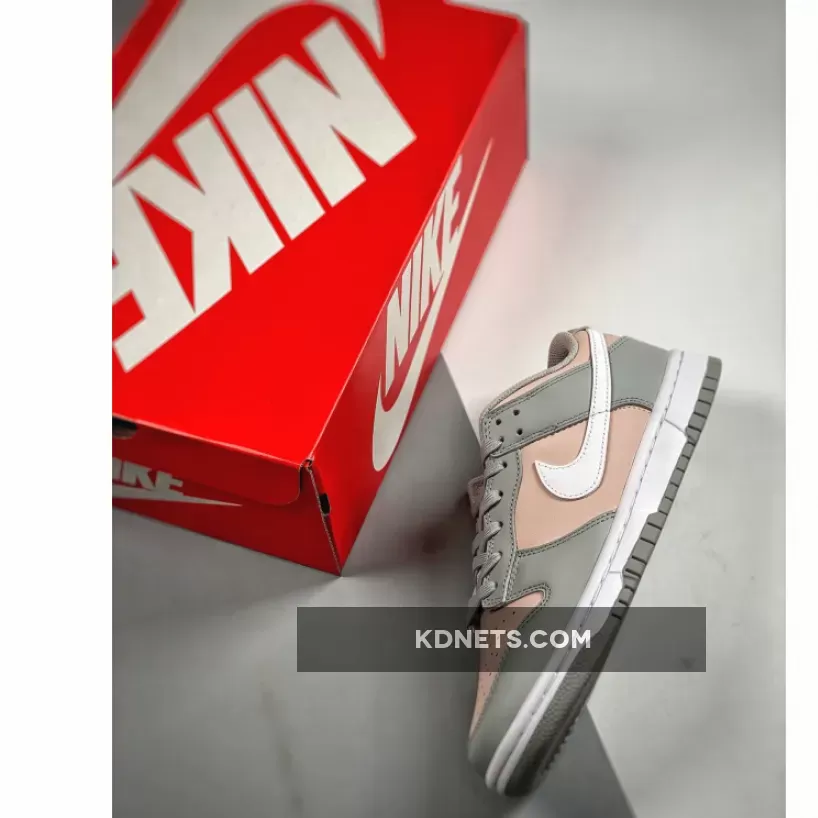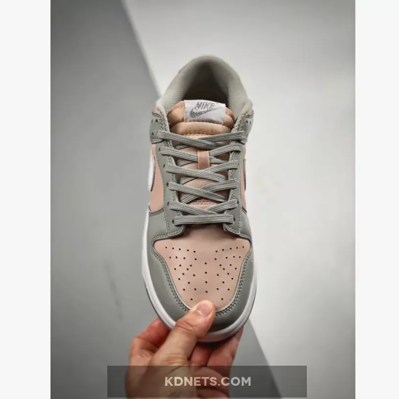 Dressed in a dusty pink leather upper and mesh tongue with leather overlays in grey, this colorway is sure to be a must-have for this summer. White Swoosh contrasts the other hues with the tongue tag also in white with metallic silver Nike branding. Finishing off the Dunk Low is a white midsole with a grey outsole.