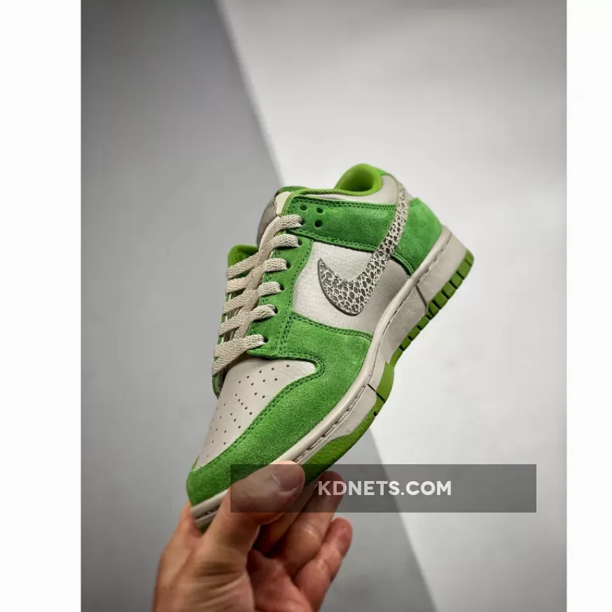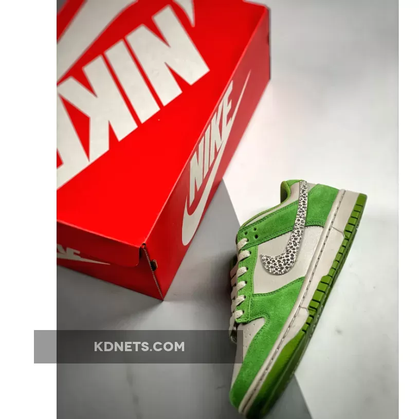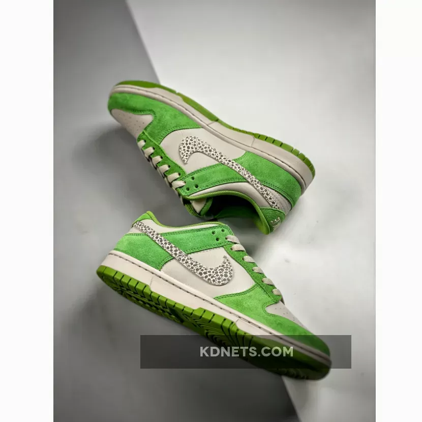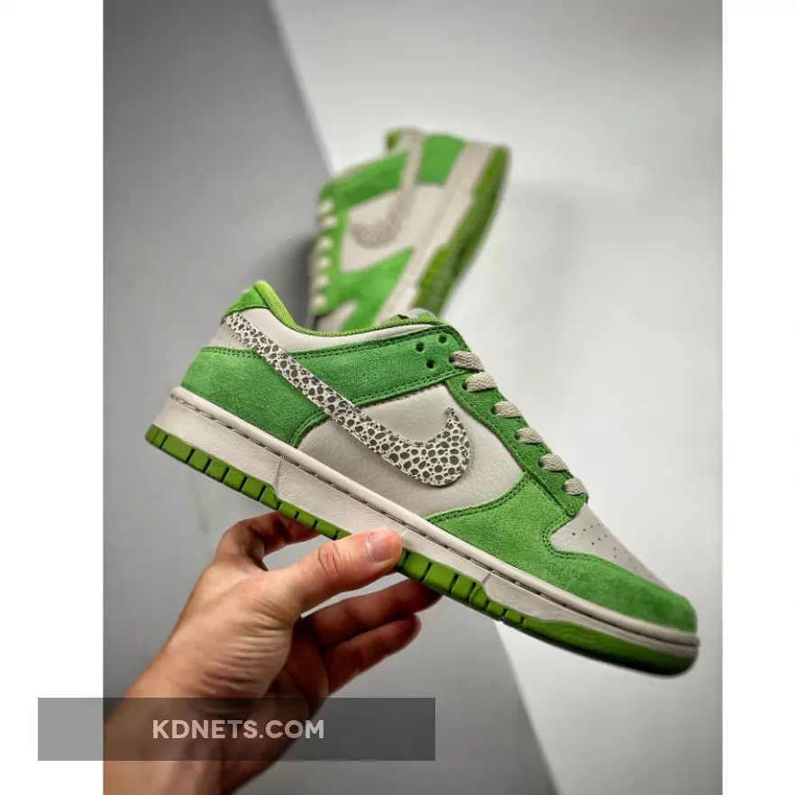 In addition to the Nike Dunk Low Safari Swoosh “Kumquat”, another colorway from the collection has surfaced with this “Chlorophyll” pair. Seen here in official images, this summertime colorway of the Nike Dunk Low starts off with a Light Ore leather base on the upper with tonal detailing noted on the tongues, laces, midsole, and the branding on the heels. For some vibrant color we see the addition of Chlorophyll green suede on the overlays as well as on the tongue branding, inner liner, heel tabs, and the rubber outsoles. The icing on the cake is the safari printed-Swooshes on the side panels.
