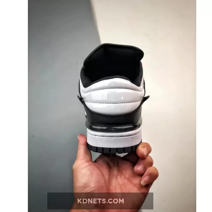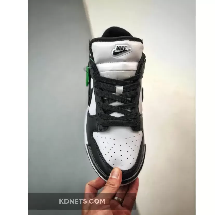 Our first look at the Nike Dunk Low Twist in the Panda colorway shows the obvious which is the traditional Panda color blocking found throughout the leather upper. Smooth white leather underlays begin the design, hitting the perforated toe boxes, medials, and exaggerated heel counters. Black pebbled leather counteracts casually adorning the opposite overlays.