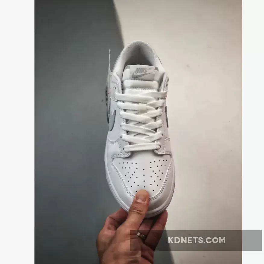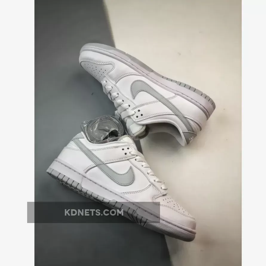 Exploring a near all-white upper – save the tongue trim, back tabs and Swooshes that proffer the ever-so-light grey hue – crisp colorless leather overlays are further anchored by matching laces, its sock liner and clad midsole. As one of the brightest Dunk Low builds, the “Pure Platinum” scheme returns to contrast the “Arctic White” aesthetic by way of outfitting the tread in conclusion.