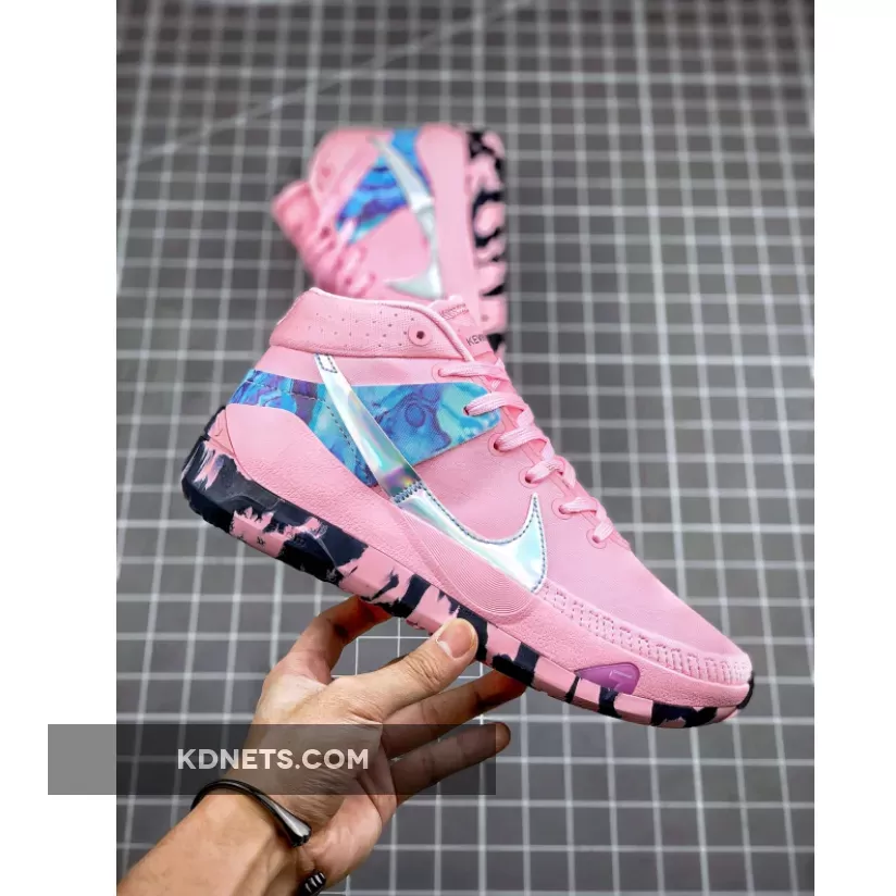 Designed to drive cancer research funding through a partnership with the Kay Yow Cancer fund—the KD 13 “Aunt Pearl” is the tenth edition of this celebrated franchise. This special edition Nike KD 13 features an upper dressed in Pink, contrasted by an abalone pearl inspired Swoosh and sole. To honor the spirit of Aunt Pearl, a portion of proceeds from this shoe will go towards finding cures for women’s cancers.
