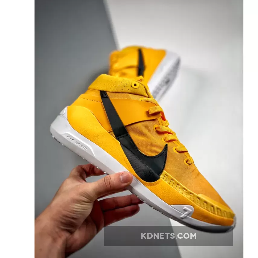 Nike KD 13 TB U Gold delivers on both style & performance. Flyknit + Zoom Air = cozy & responsive. U Gold colorway is 🔥! #NikeBasketball #KD13TB