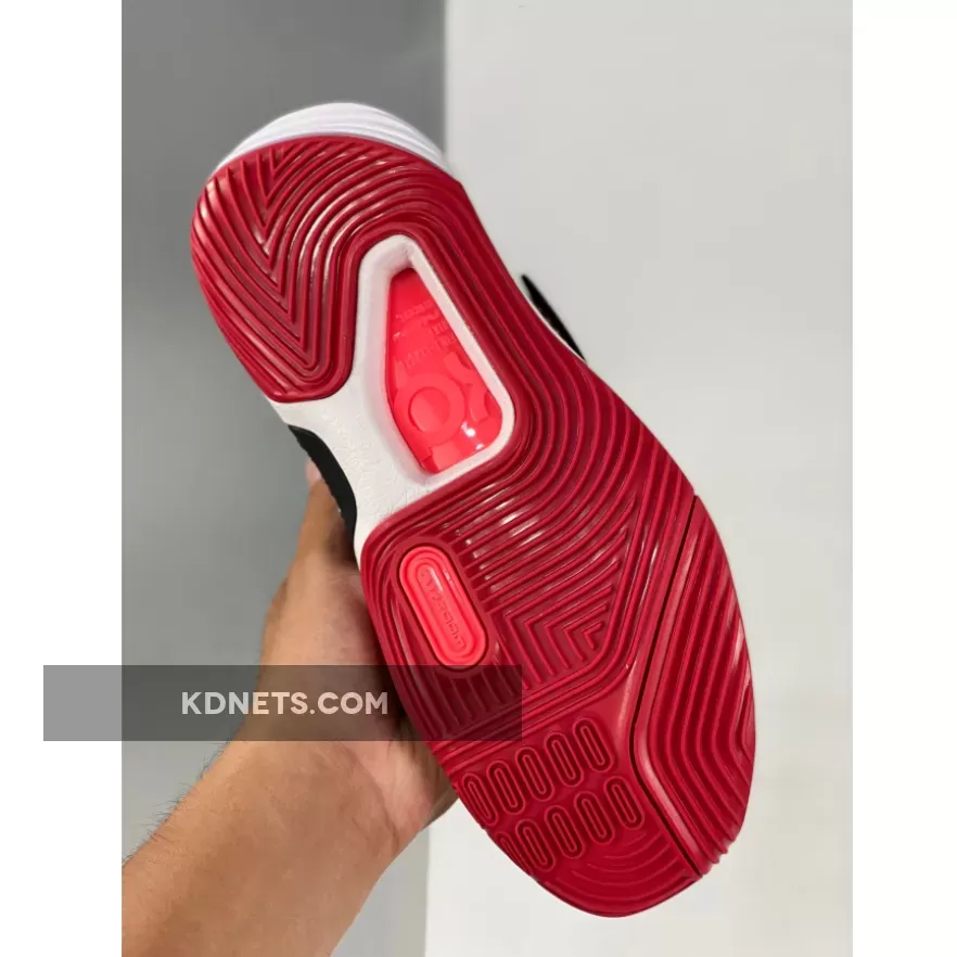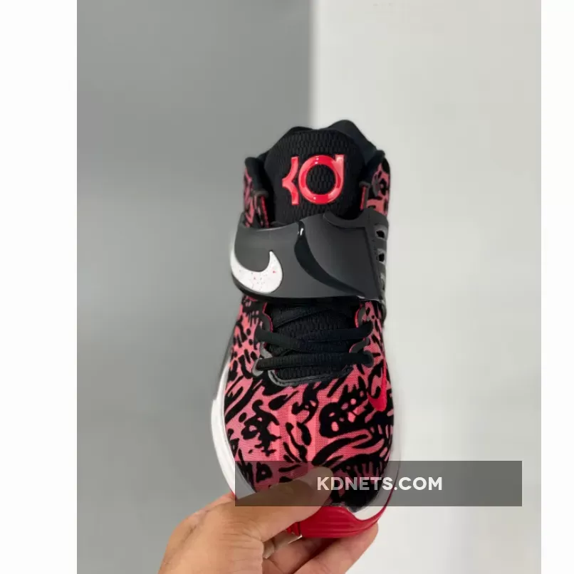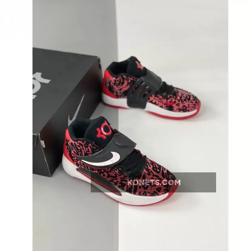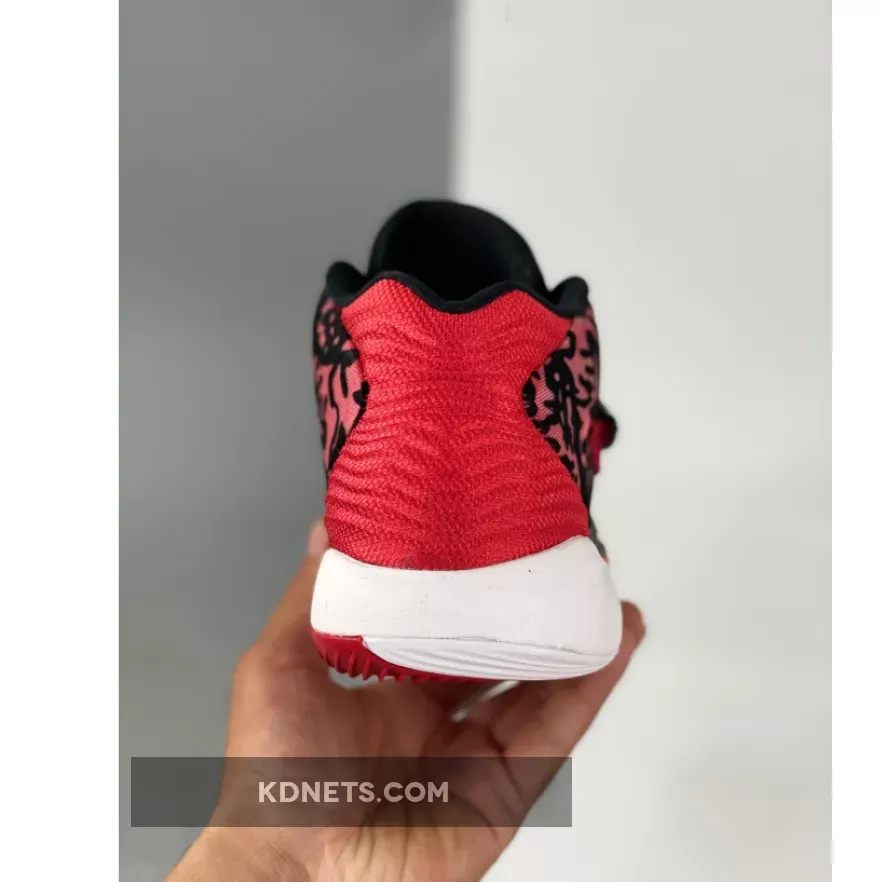 This offering of the Nike KD 14 comes constructed in mix materials featuring a textile Black and Red base with a White speckled Swoosh on its midfoot strap. Bold Red branding throughout atop a White midsole and Red rubber outsole completes the design.