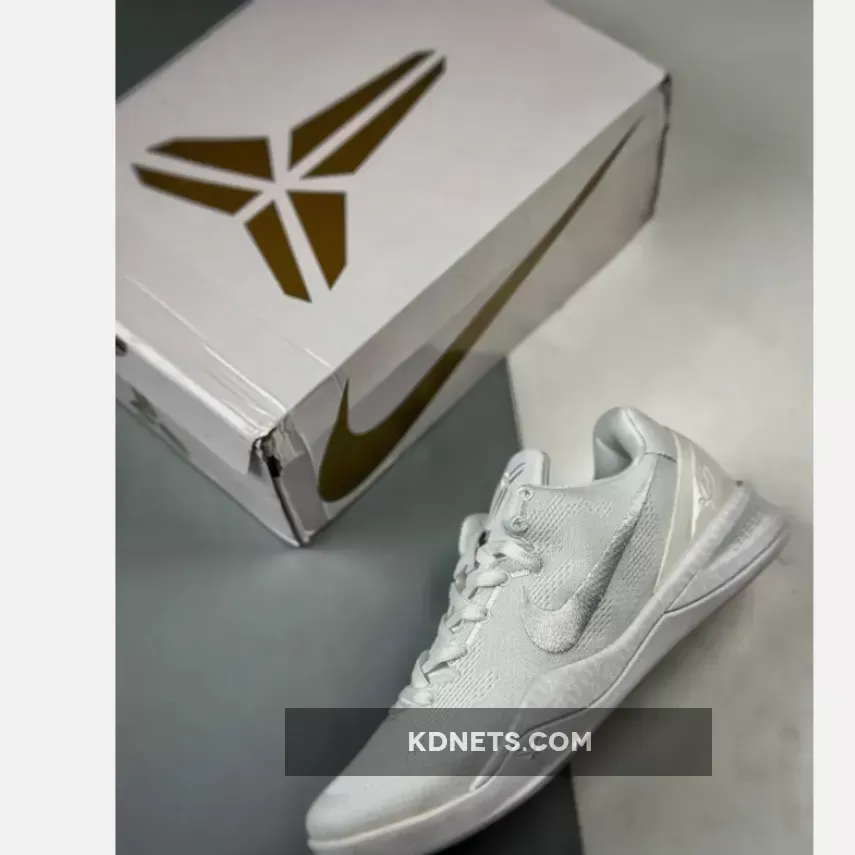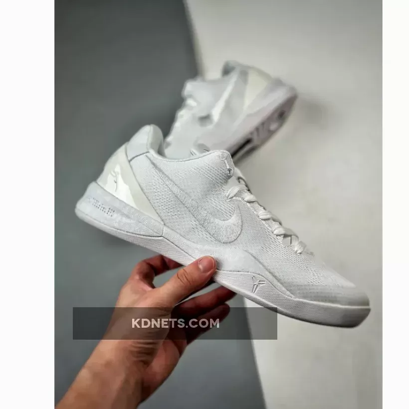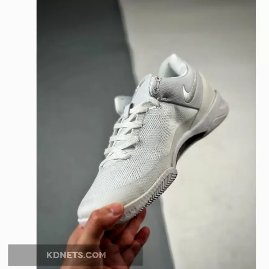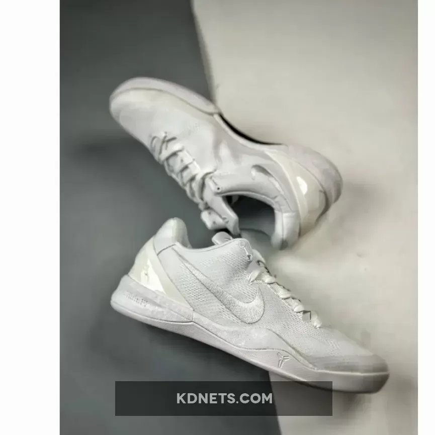 Sleek, lightweight, and breathable with an all-white Engineered Mesh upper. The embroidered Swoosh and Kobe logos adds a touch of elegance. Lunarlon midsole with Zoom Air cushioning provides excellent responsiveness and comfort. Overall, a stylish and comfortable shoe for casual wear or game-time. #NikeKobe8Protro #TripleWhite #BasketballShoes