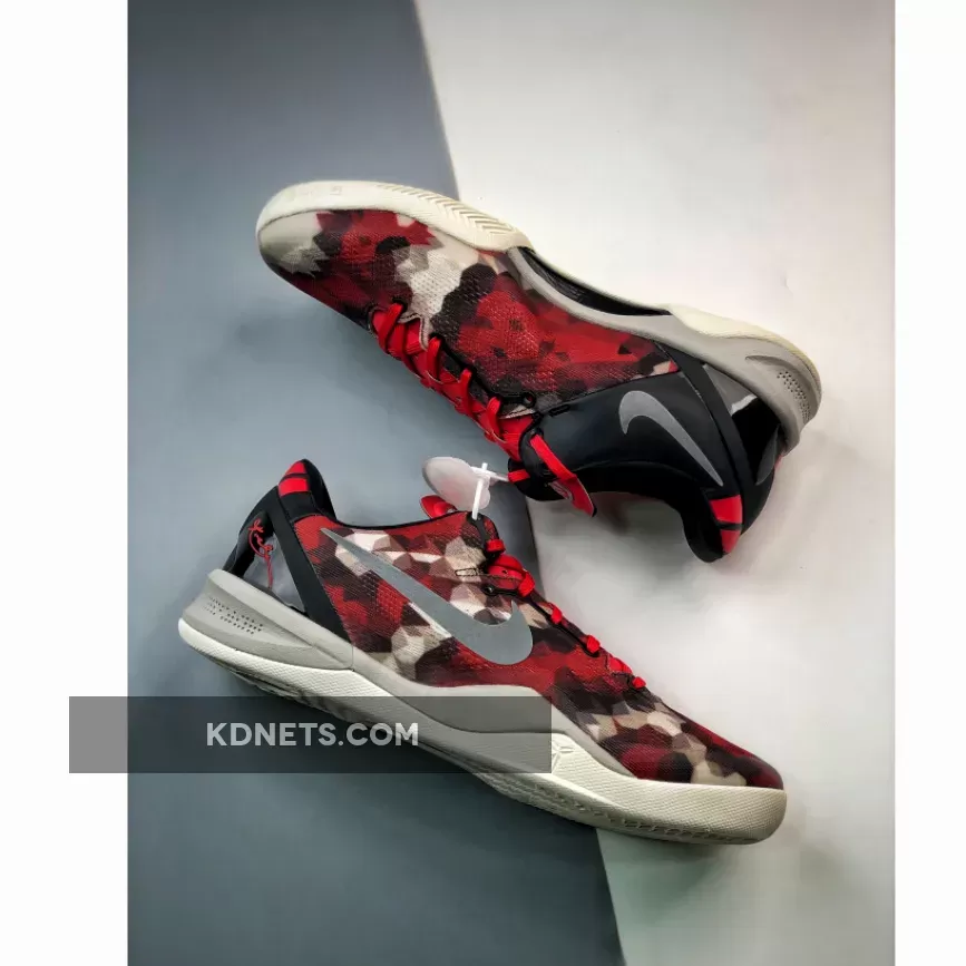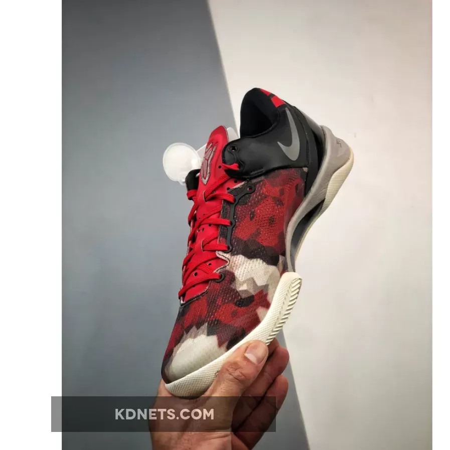 This latest colorway of the Nike Kobe 8 System is known as the “Milk Snake” edition. They come in a university red, sail, noble red and pearl grey colorway. Featuring a camouflage design on the upper.