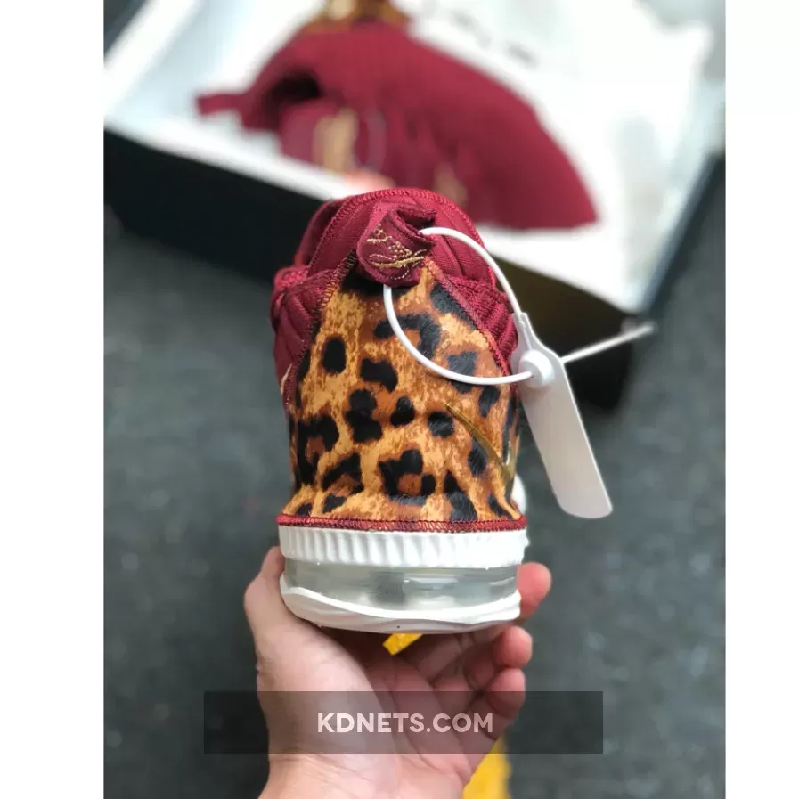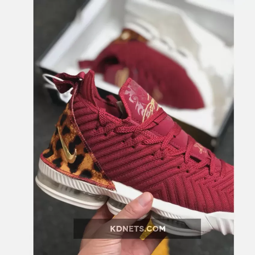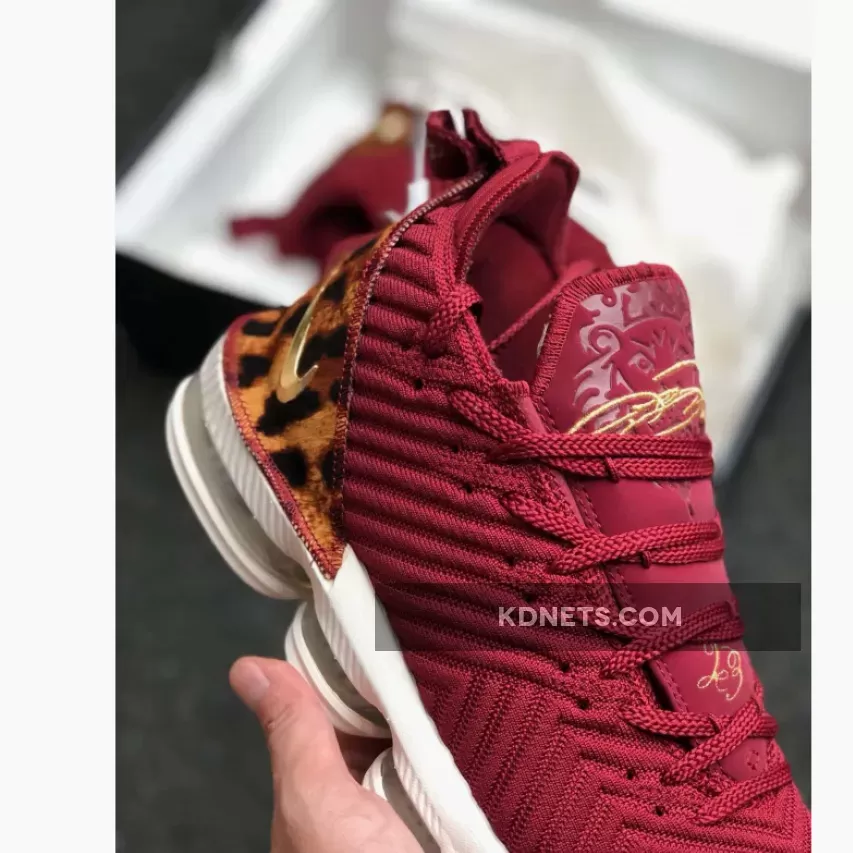 This Nike LeBron 16 is a nod to the small forward position, which is part of Nike’s “1 Thru 5” Collection. It features a Red Battleknit upper with leopard print heels that pays homage to a classic Air Zoom Generation ad campaign during his early career. That same photo is used on the insoles, along with Metallic Gold accents on the Swoosh, heel tab, and tongue.