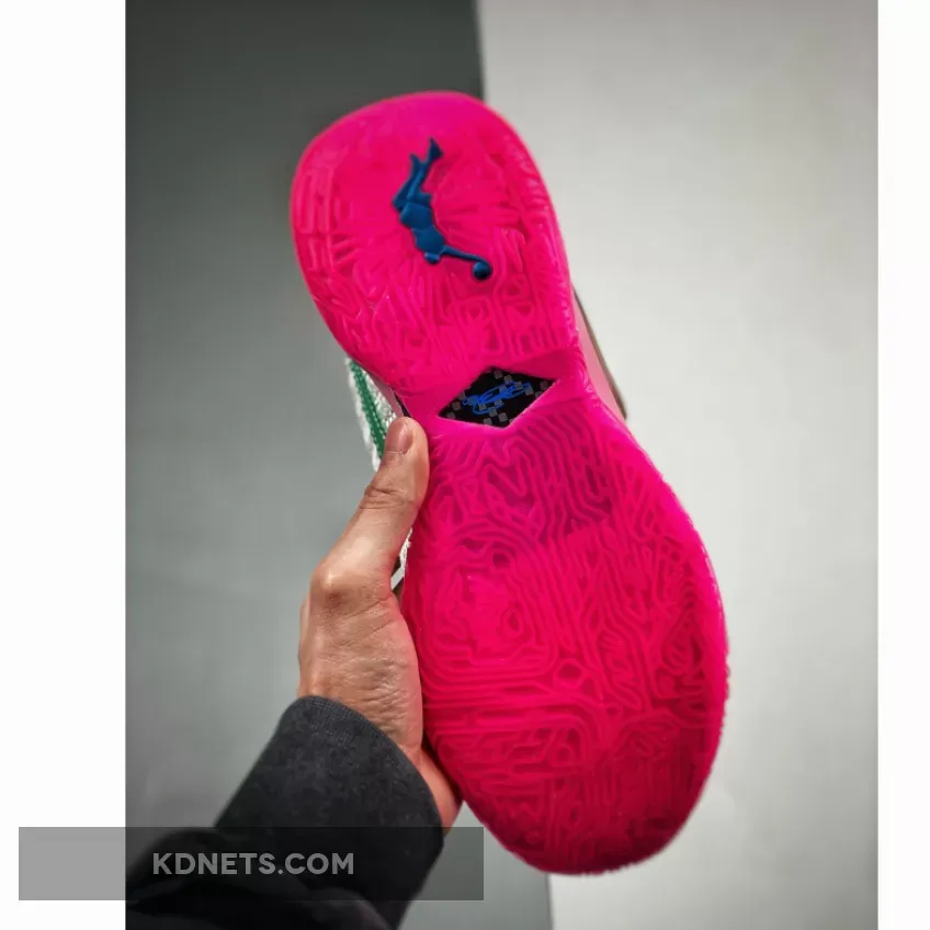 This “Barely Green” colorway mixes in hits of multi-color and Medium Soft Pink to achieve that Miami-friendly color palette — a theme that has stayed consistent with Nike LeBron footwear despite his departure from South Beach in 2015. First, the upper is a knit that lands in a mint green. An “XX” lace dubrae arrives in a shiny pink while each base Swoosh carries a seafoam green with contrast stitching outlining it. On the lateral, an additional Swoosh with an iridescent finish and pink outline rests atop the base Swoosh. A carbon fiber midfoot plate does peek out through the outsole traction, while a full-length Zoom strobel is likely encased inside the midsole. Behind the tongue is a “Pink Diamond Collection” designation, which suggests an assortment of other bright and vivid colorways.