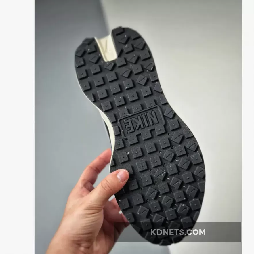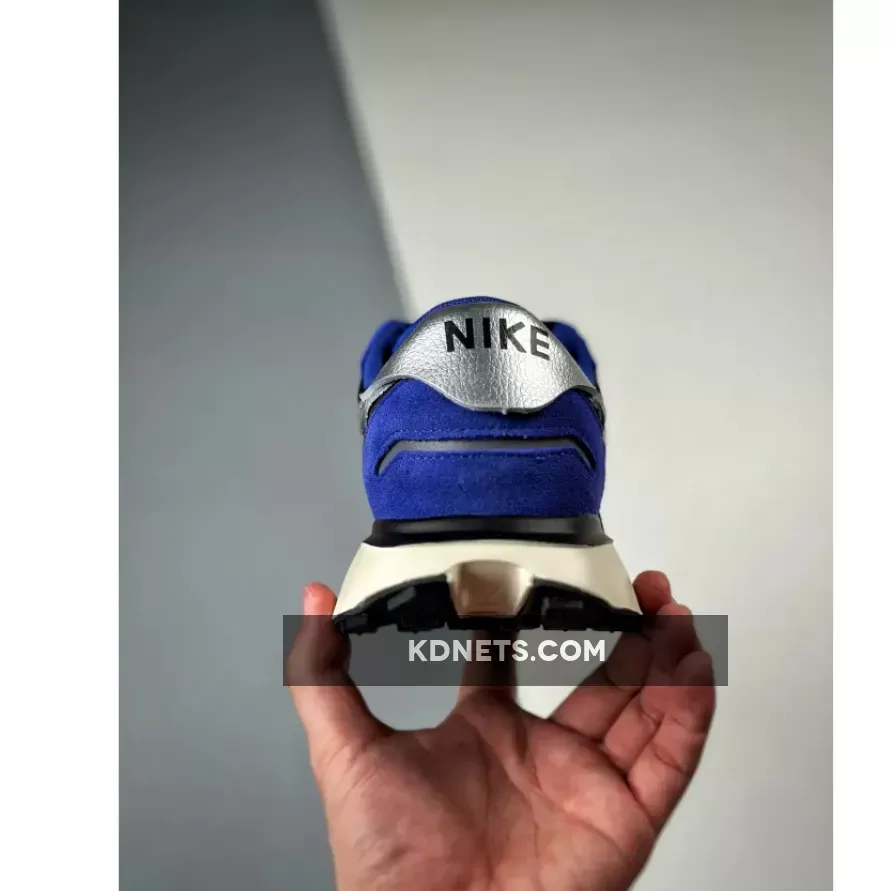 This Phoenix Waffle has a nude-coloured mesh base. The suede overlays on the toe cap, eye stay panel and heel and heel panels are cool light grey. The tumbled leather signature profile Swooshes that glide across both the medial and lateral mid-panels are in contrasting black, matching the Swoosh branding on the tongues and insoles and the heel tabs. A flared foam midsole in white and a black waffle-patterned outsole finish off the design of these kicks.