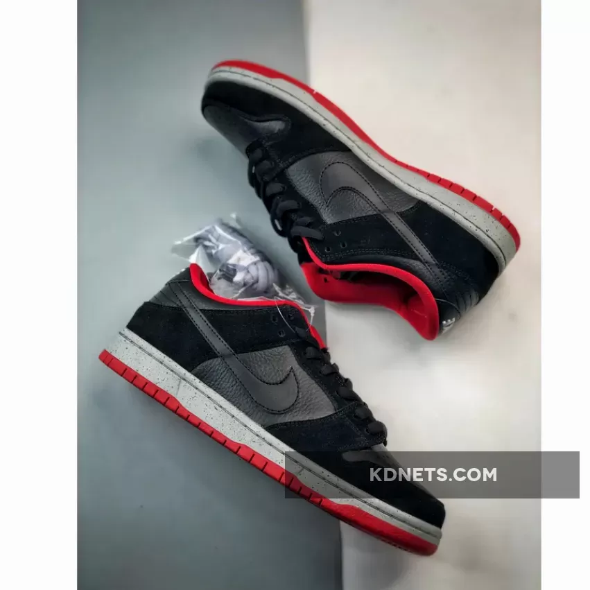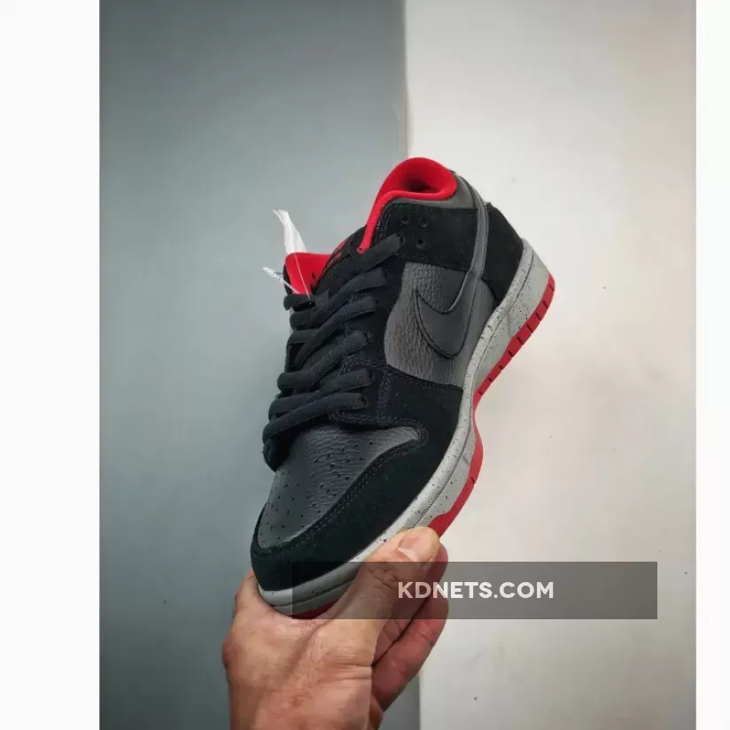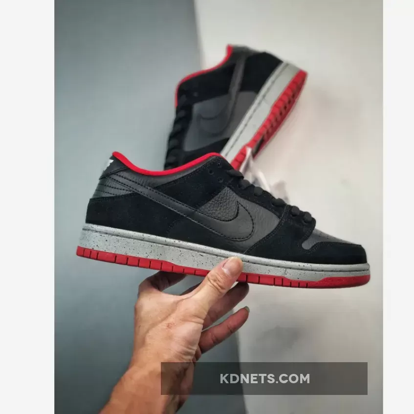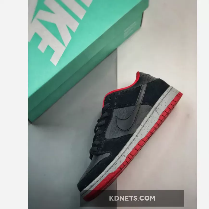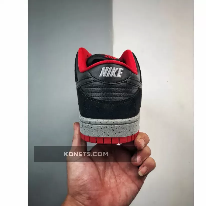 The Nike SB Dunk Low “Black Cement” lives up to the hype! Premium black leather & suede overlay look sleek. U/N red accents & “Black Cement” speckles add a stylish touch. Comfort meets style, perfect for everyday wear. #NikeSB #DunkLow #BlackCement