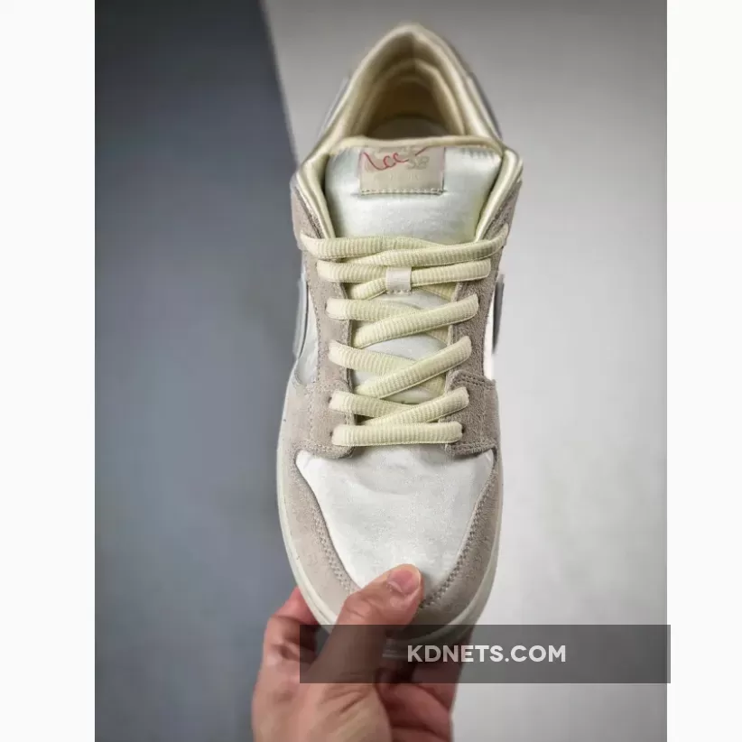 For the uninitiated, the red string of fate is the belief that everyone’s pinky finger is tied to an invisible thread, one that will inevitably lead you to your destined person. Crafted with a satin base, plush suede, and textured tumbled leather overlays, these sneakers capture the essence of romance effortlessly. What sets them apart is the clever incorporation of a red string seamlessly woven into the Nike SB logo on the tongue, a powerful symbol of the enduring connection represented by the red thread of fate. While much of the shoe is understated in form — consisting almost entirely of neutral colors — the pair does visualize the legend across its insoles, depicting two hands connected by said imperceivable cord. What’s more, the latter also wraps around the Swoosh of the adjacent tongue label. To round off the lovable design, a white rubber sole adorned with red stitching along the midsole completes the picture.