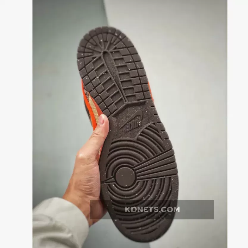 Hailing from the Nike SB Dunk’s beloved “Pink Box” era, the “Hunter” edition showcases a unique approach to Forbes’s skate shoe vision. It boasts a sturdy burlap base adorned with brown-and-white camouflage overlays. Adding a pop of color, an Orange Blaze canvas Swoosh graces both sides of the shoe, complemented by an orange quilted nylon interior lining. The design is punctuated with tonal zig-zag stitching on the overlays, amplifying its rugged charm.