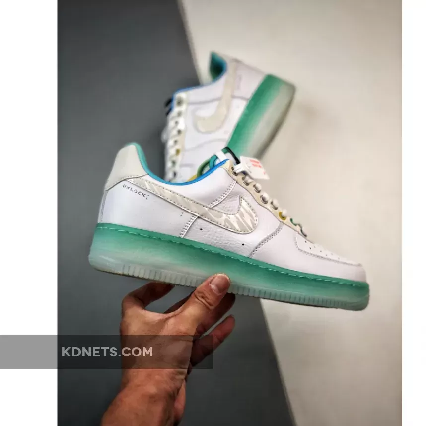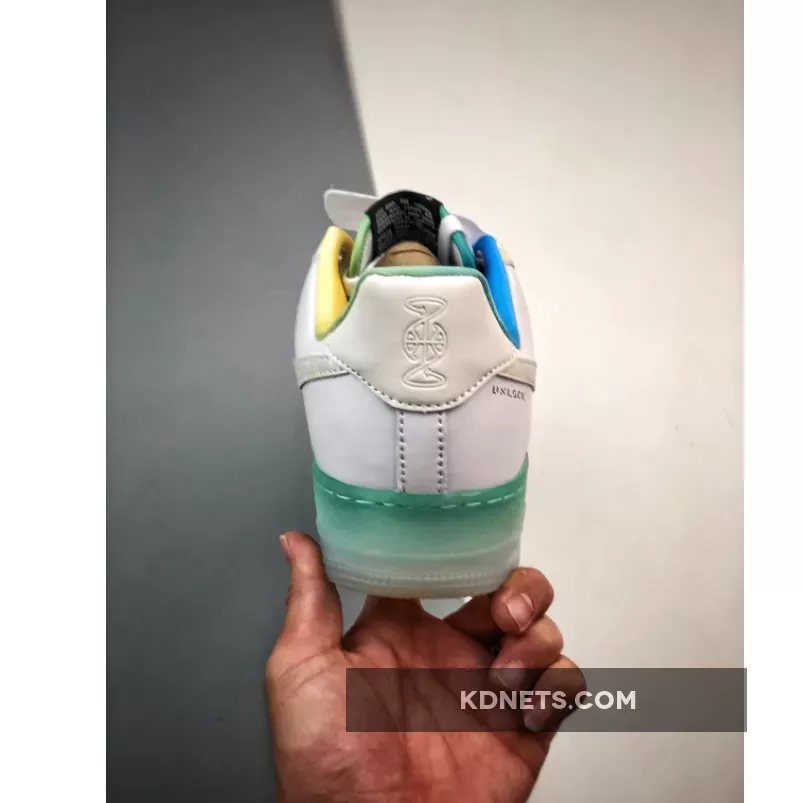 the “Unlock Your Space” concept previously appeared on other beloved silhouettes – including the Air Max 1. Seemingly a play on the basketball idea of “creating space,” Each pair comprises vibrant colors, abstract patterns, and “blank spaces” begging for users to customize their Air Force 1‘s. The latest style favors a clean look that’s animated by hits of blue, green, and yellow. Special logos at the spine, sockliner, tongue, and lace dubrae round out the shoes.
