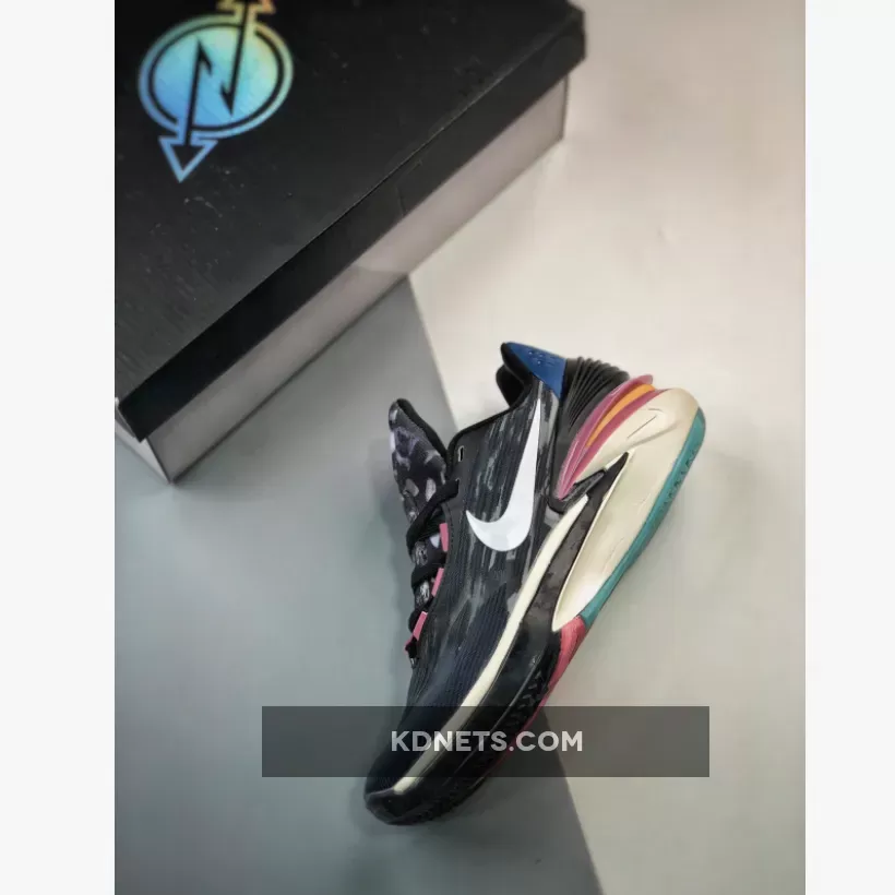 Adding another jet black base to the line, “Summit White” Swooshes and a cream midsole proffer a lightened contrast to the dim proposition while “Desert Berry” hues accent the eyestays, molded heel clip and sectioned tread of the midfoot. Above the models ridged counter a deep Navy tint fills the perforated leather back tab before the laces and inner lining follow suit in the established pitch-black shade. Utilizing the models muted tonal spectrum, the mesh tongue construction outfits a print complete with jagged stones and clean-cut jewels for a diverse addition on the court concluded by a black, crimson and semi-translucent baby blue outsole.