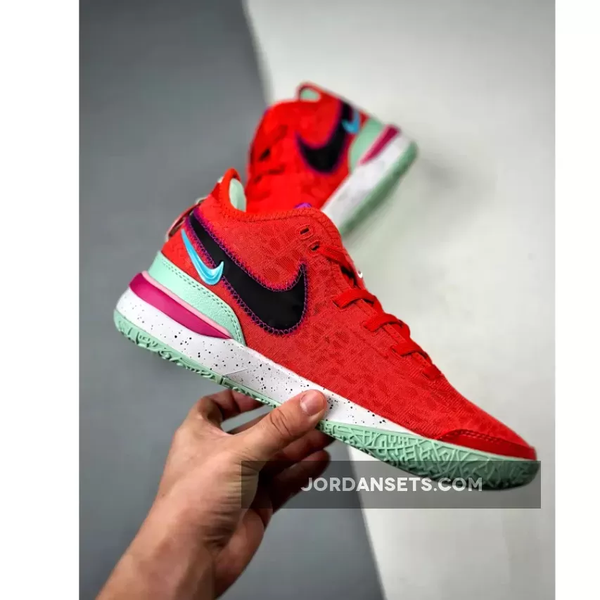 The Nike Zoom LeBron NXXT Gen is a new LeBron takedown model constructed out of a mesh base, leather overlays and dual Swooshes on the lateral side. Taking a closer look you will find Nike “LBJ” branded tongues, “NXXT” text on the insoles with LeBron’s crown logo in the middle atop a full-length Air Zoom unit. This pair features a Red mesh base with matching leather tongue labels and Emerald Rise overlays on the medial. Other details include the Teal Nebula and Black Swooshes with exposed stitching, “XX” dubraes on the heel pull tabs atop a speckled midsole and Emerald Rise rubber outsole.